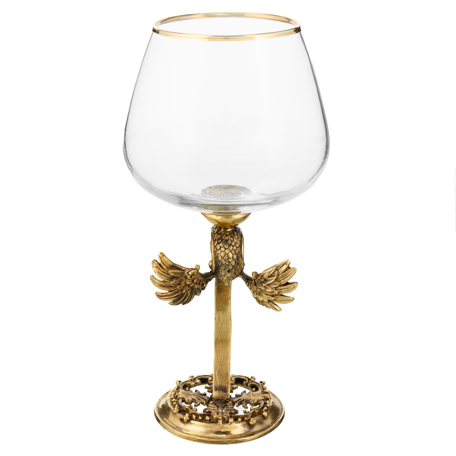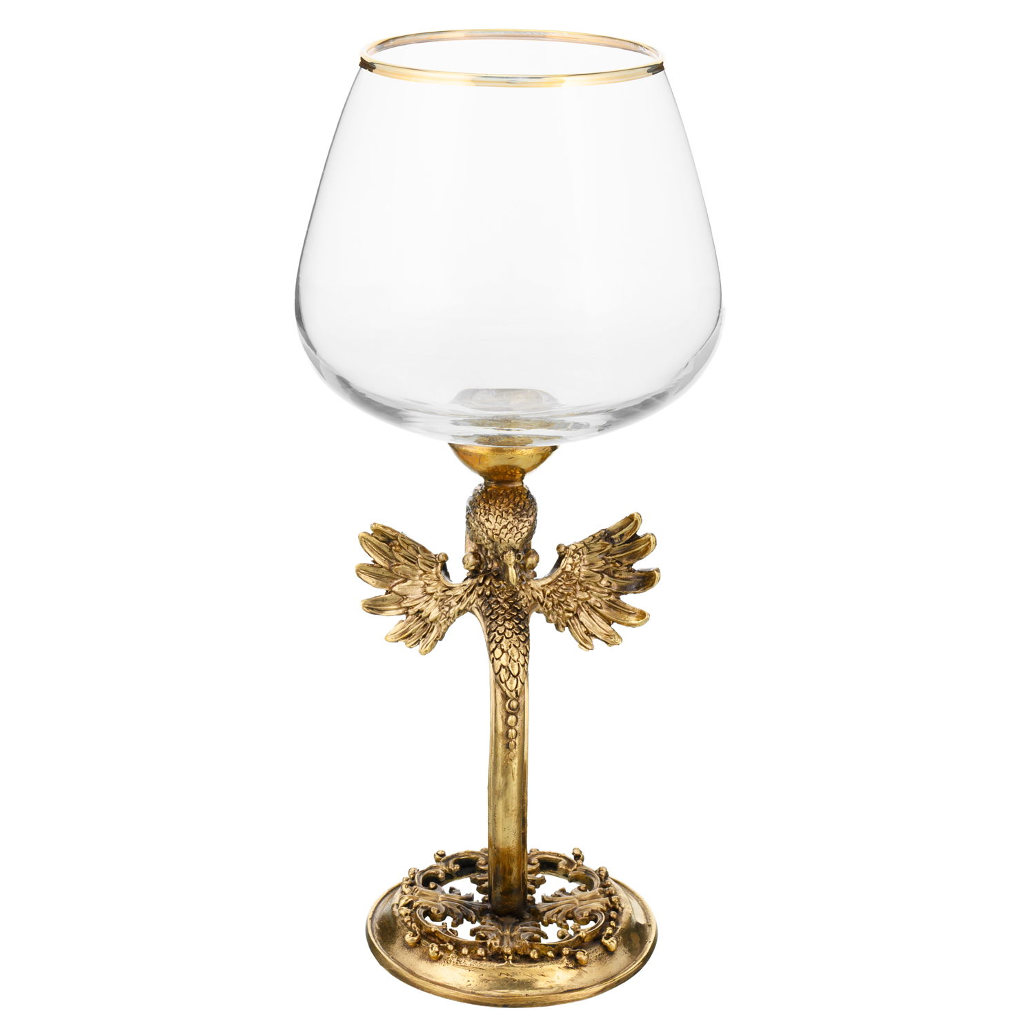 Бокал для коньяка "Ястреб".Материалы: стекло, бронза, золочение. ....