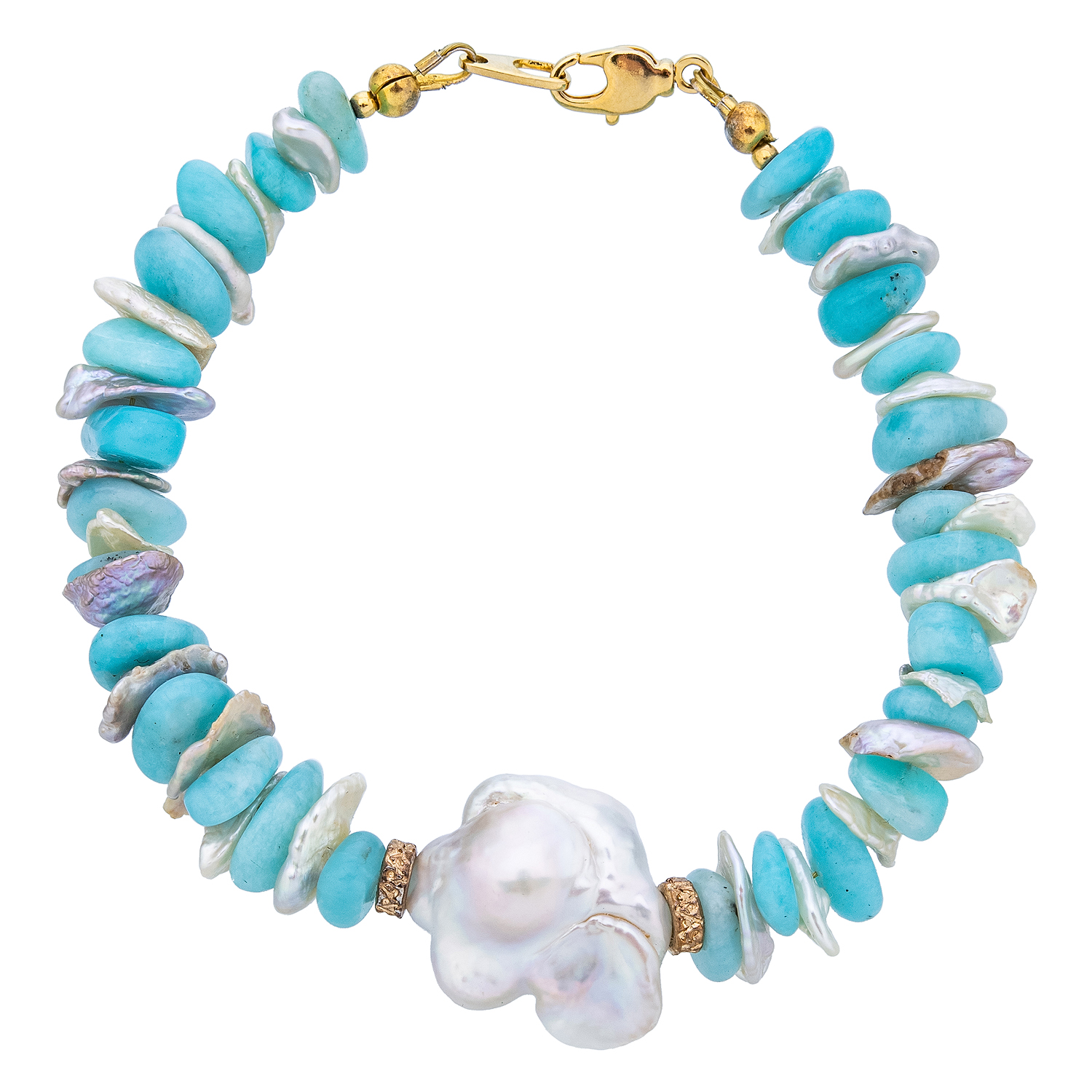 Браслет из амазонита и жемчуга "Райский остров"