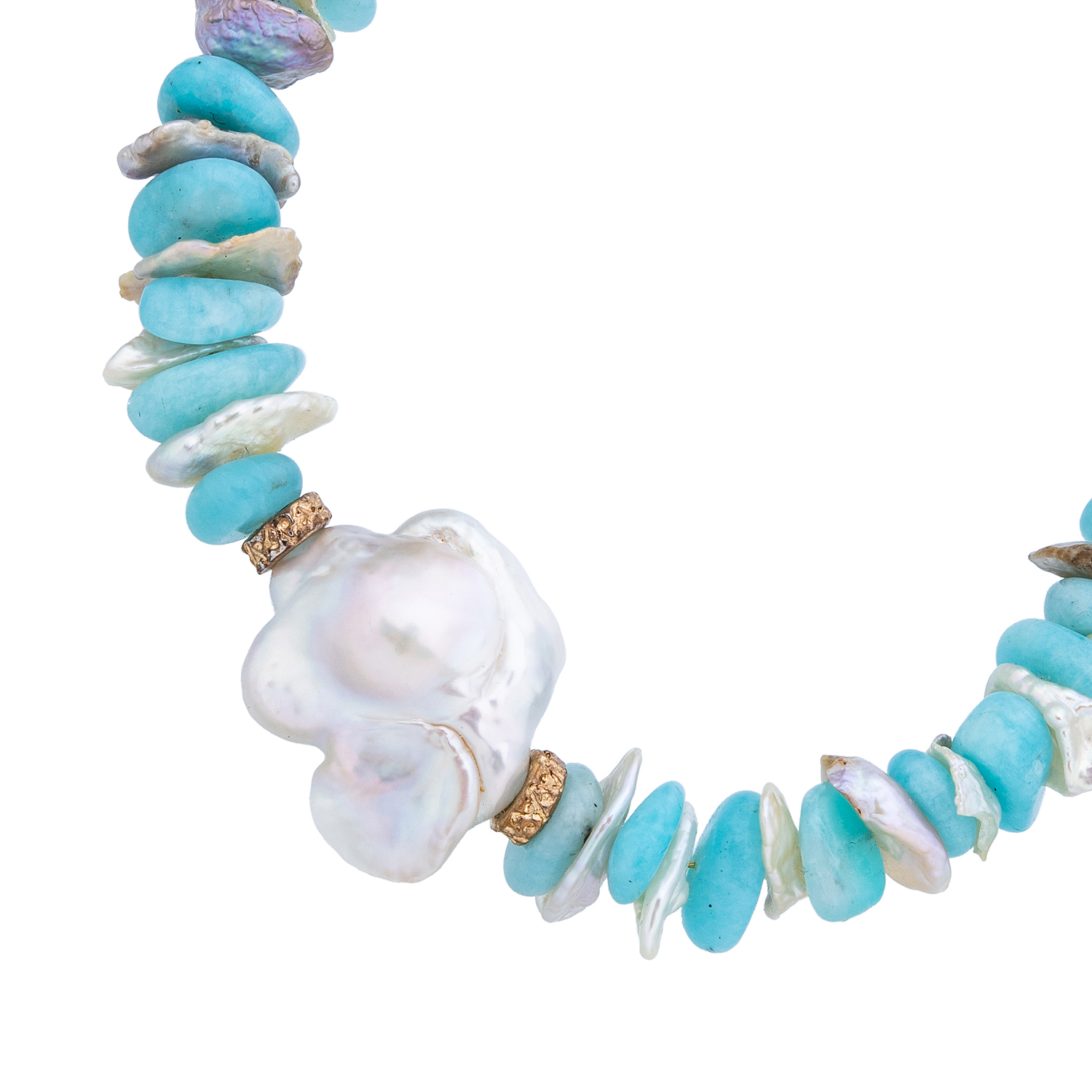Браслет из амазонита и жемчуга "Райский остров".