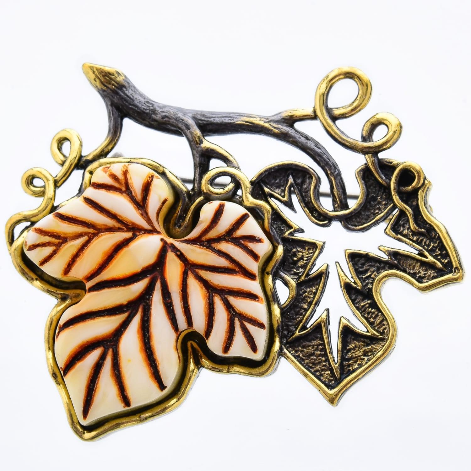 0051103/2204.4 Брошь Листики Винограда (белый)