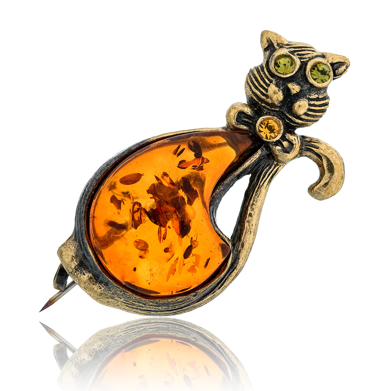 Брошь Кот с бантиком (коньячный)