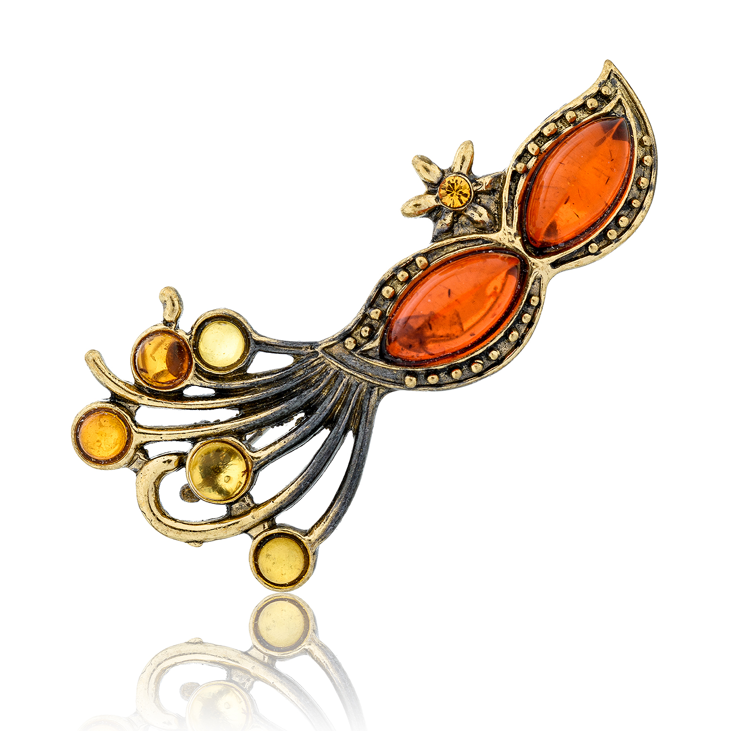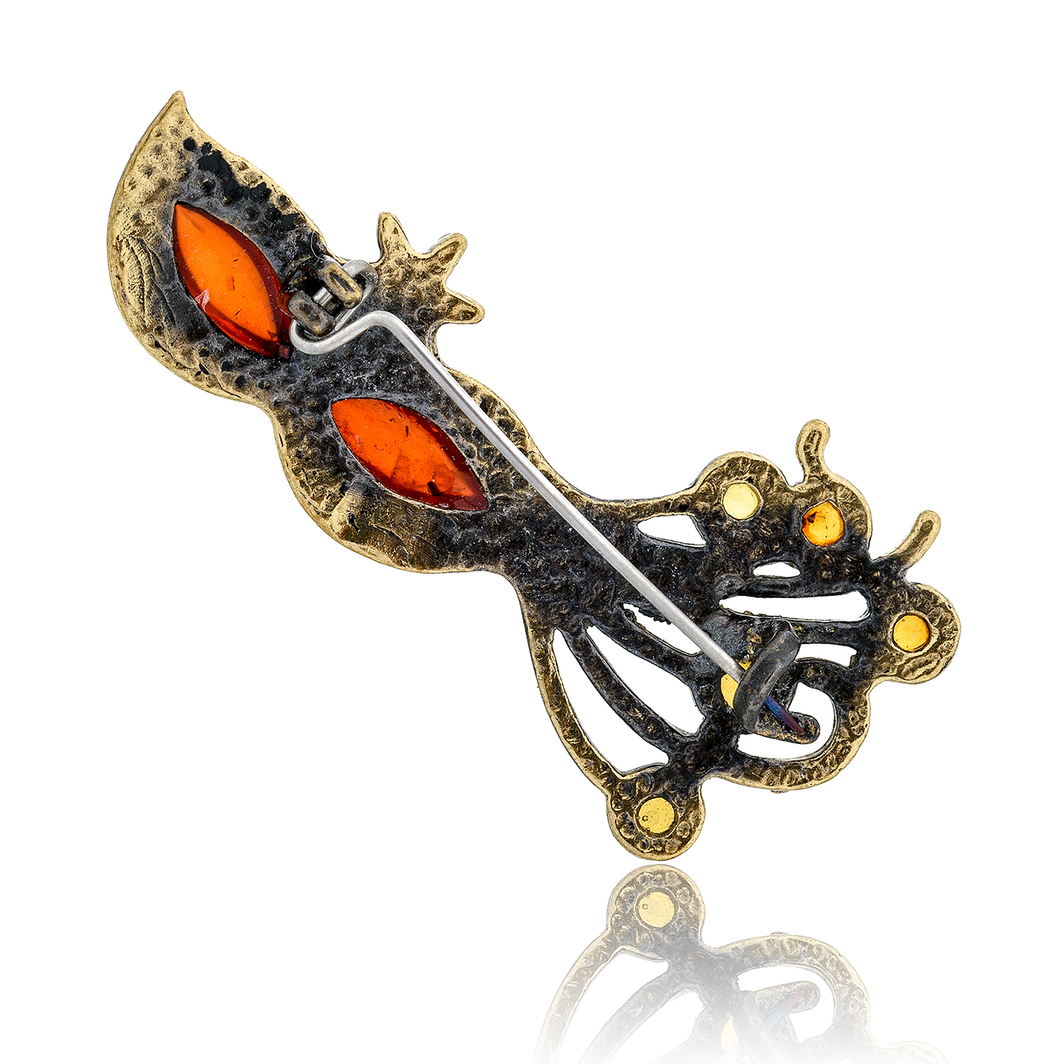 Брошь с янтарем "Карнавальная маска " (коньячный)