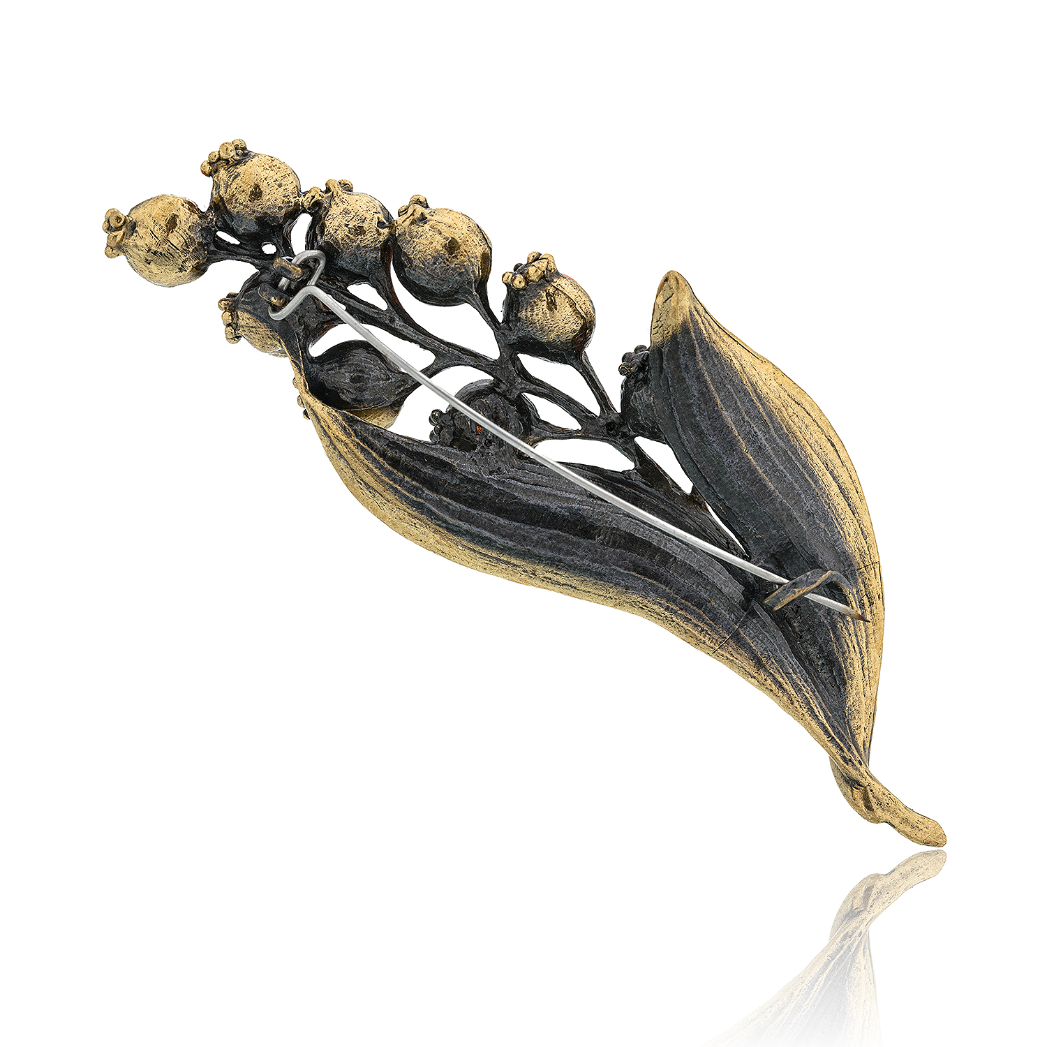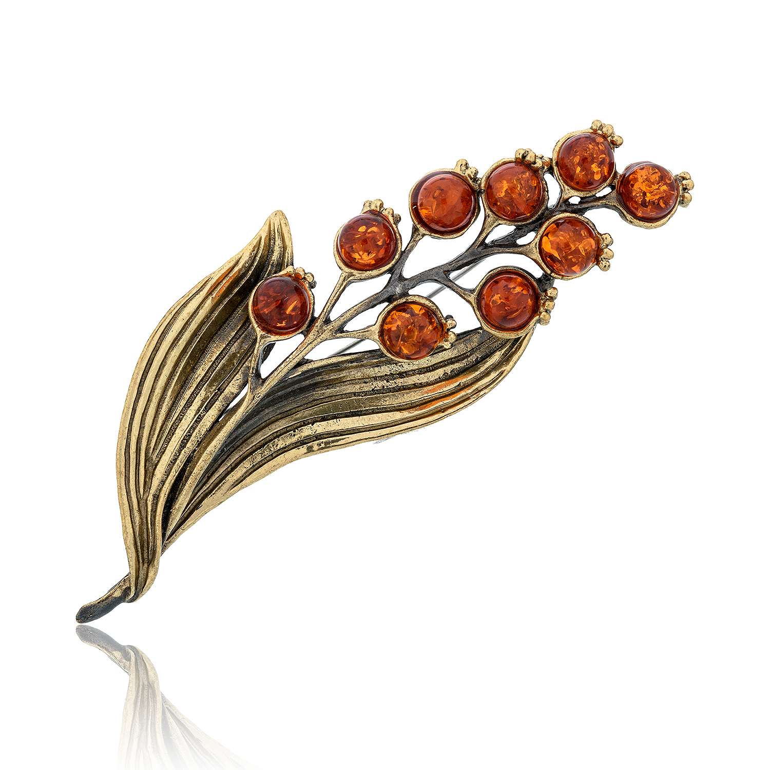 Брошь с янтарем "Ландыши".Материалы: бронза, янтарь.