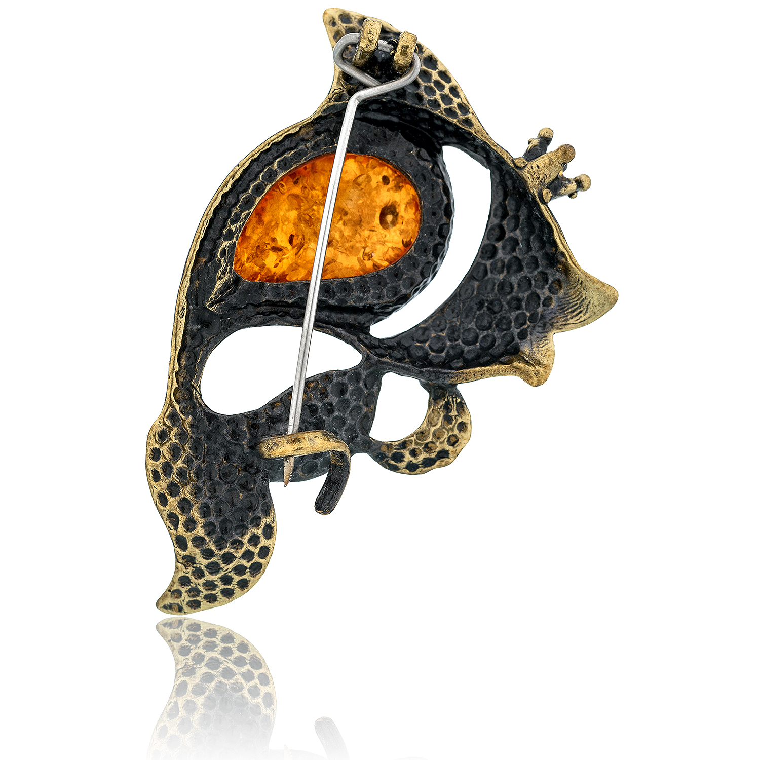 Брошь с янтарем "Рыба царевна" (коньячный)