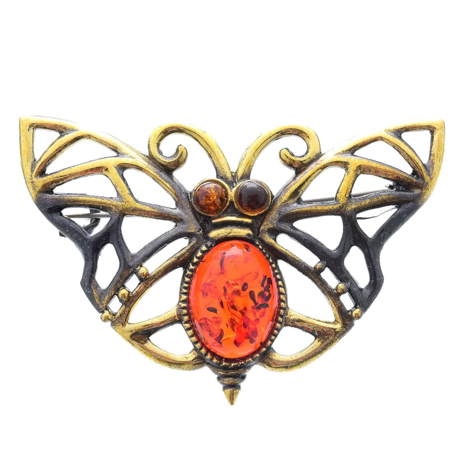 Брошь с янтарем "Мотылек Ажурный". Коньячный