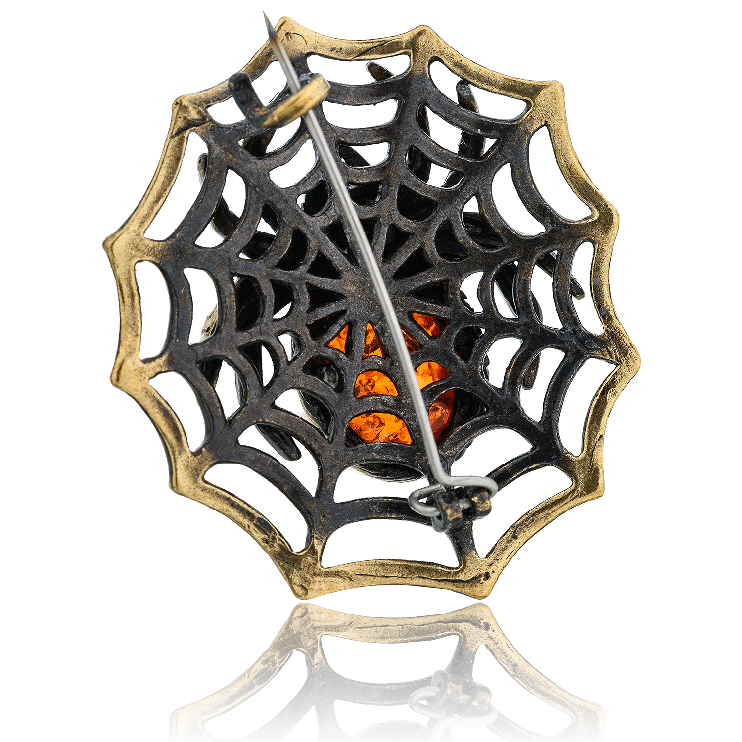 Брошь с янтарем "Паук Домовенок" (коньячный)