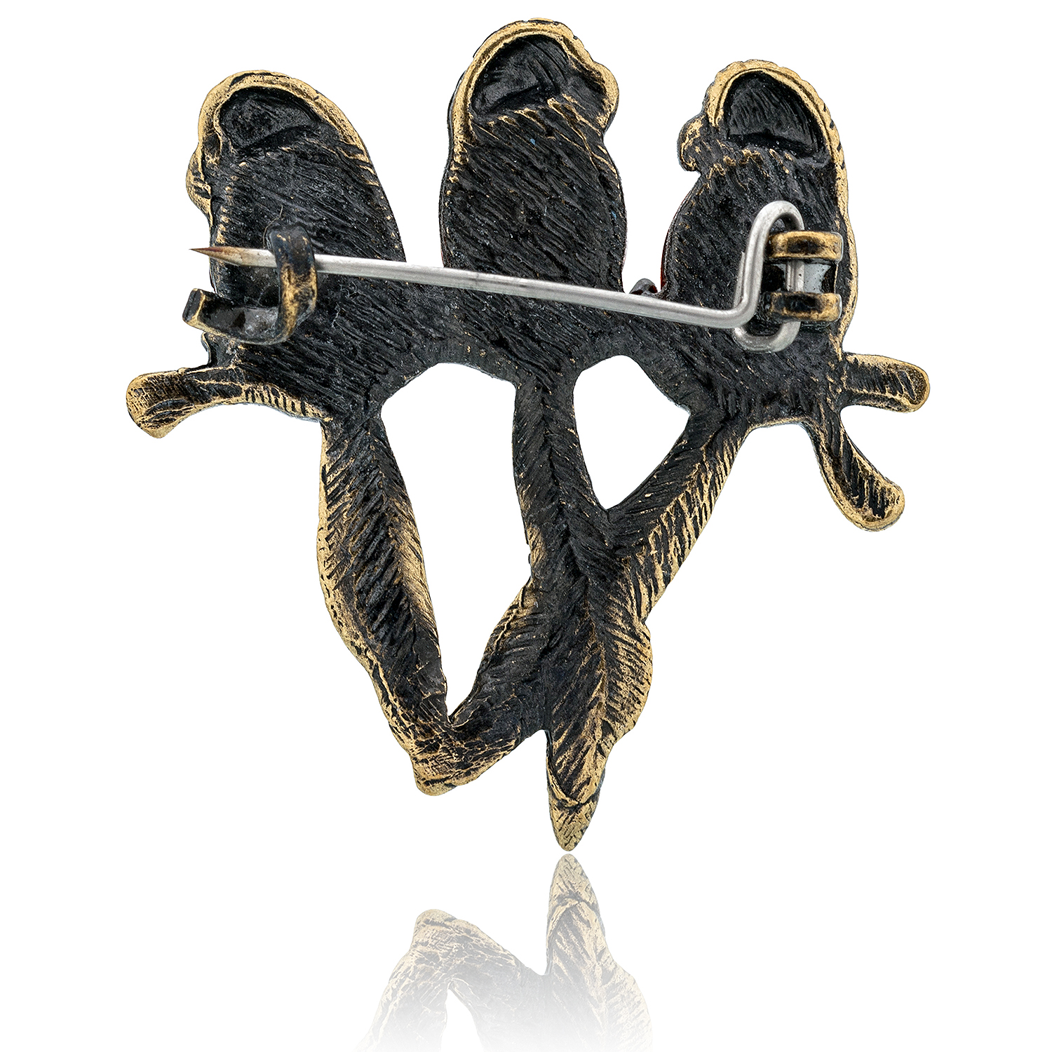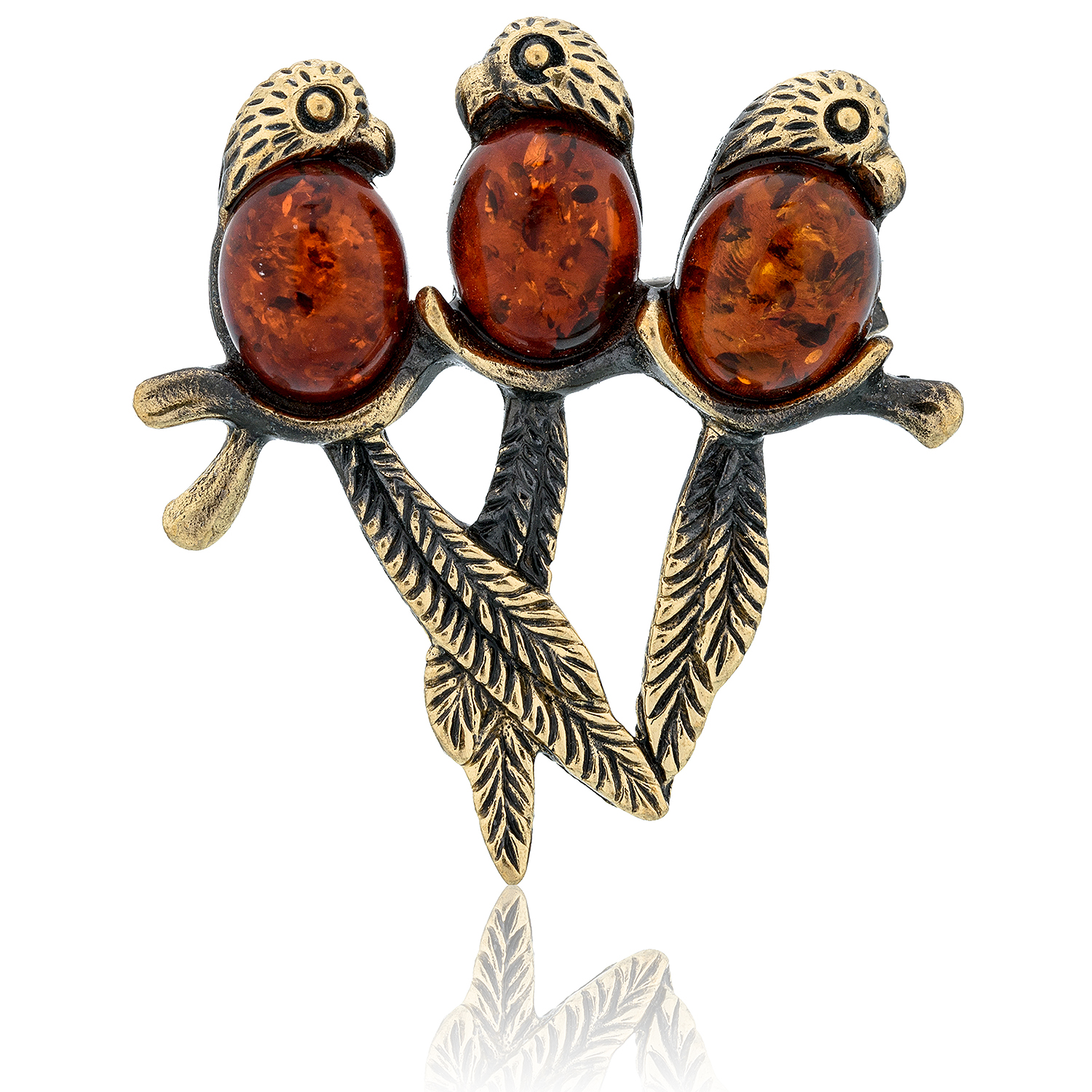 Брошь с янтарем "Попугайчики"