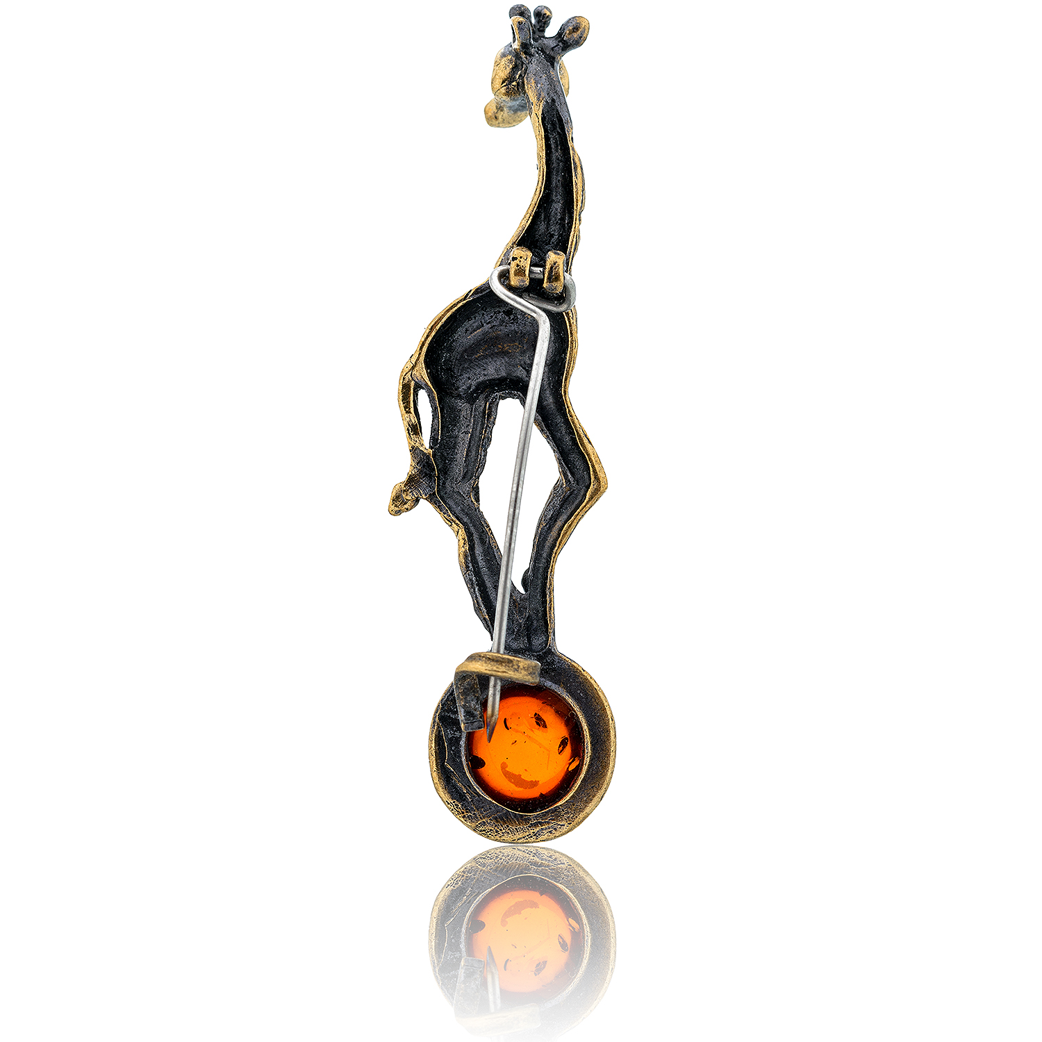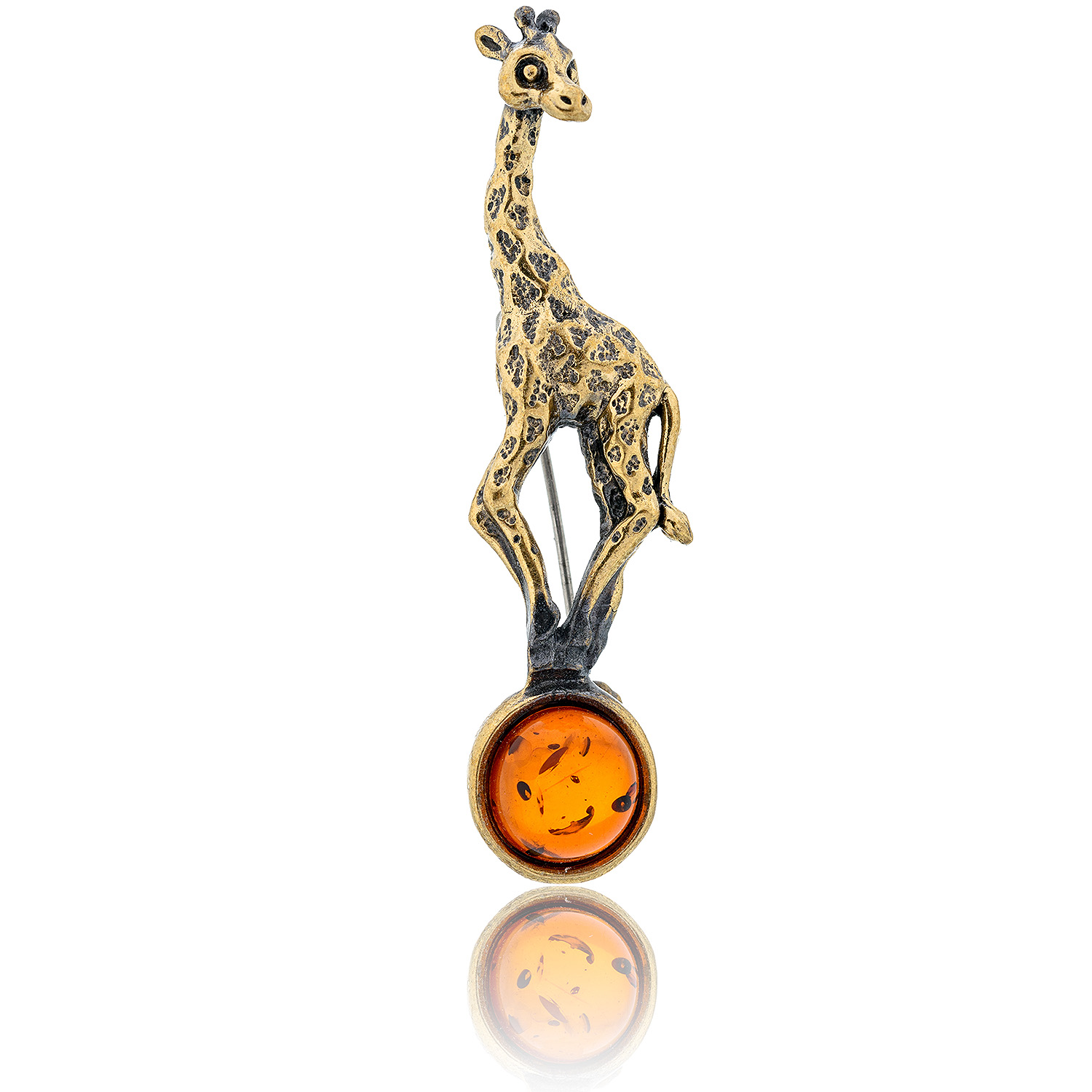 Брошь с янтарем "Жирафик на шаре" (коньячный)
