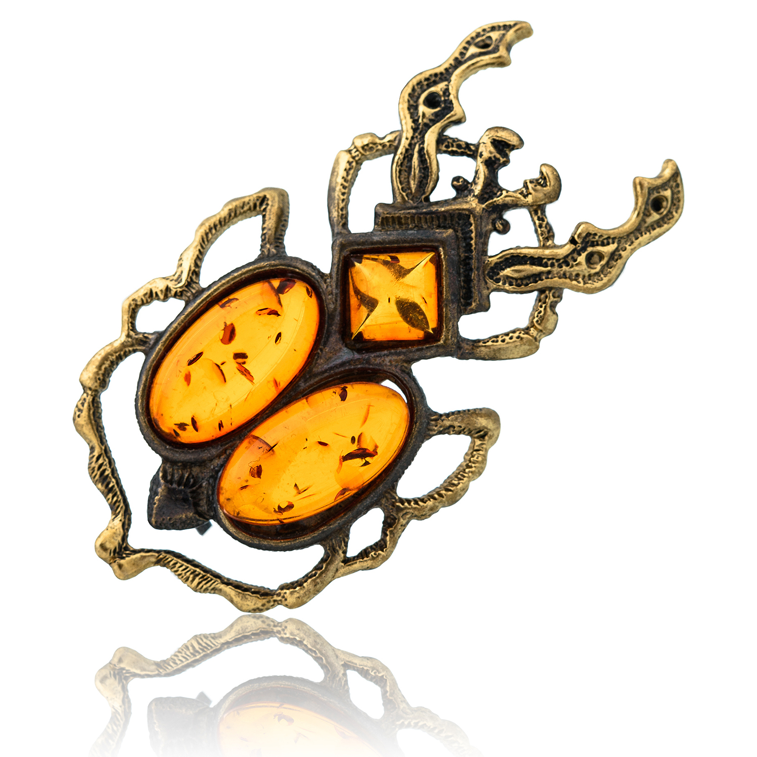 Брошь с янтарем "Жук Голиаф"
