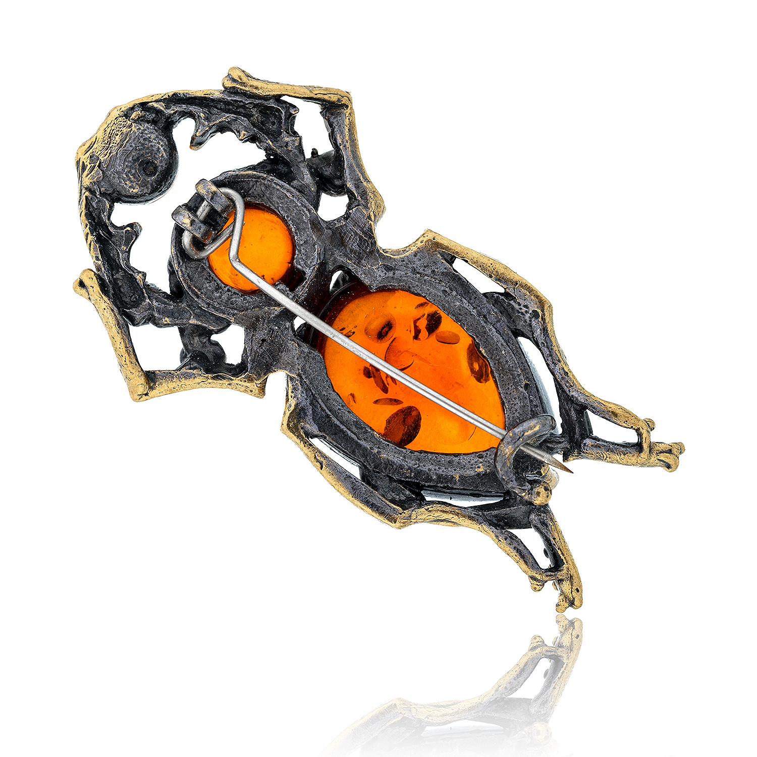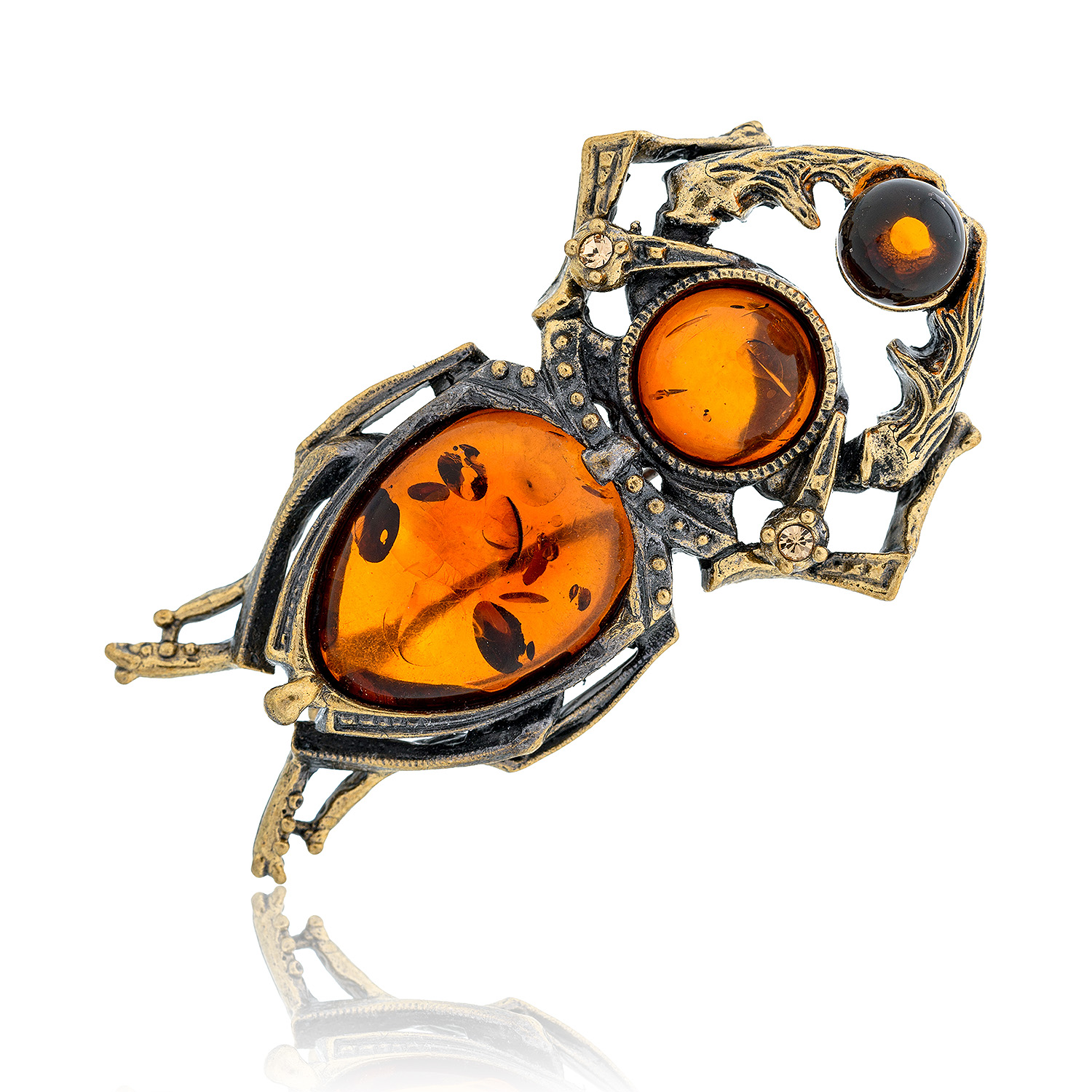 Брошь с янтарем "Жук Олень" (коньячный)