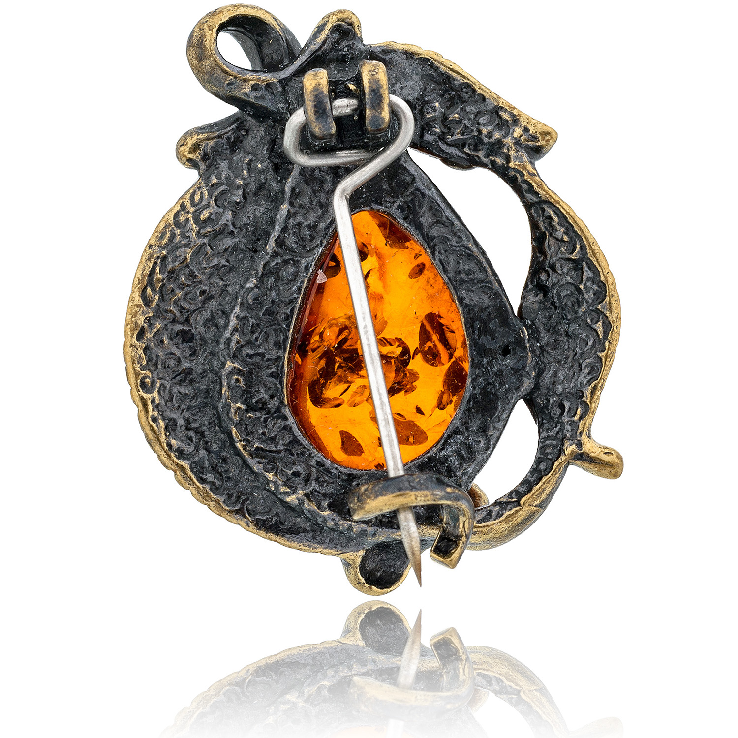 Брошь с янтарем "Винтажный листик" (коньячный)