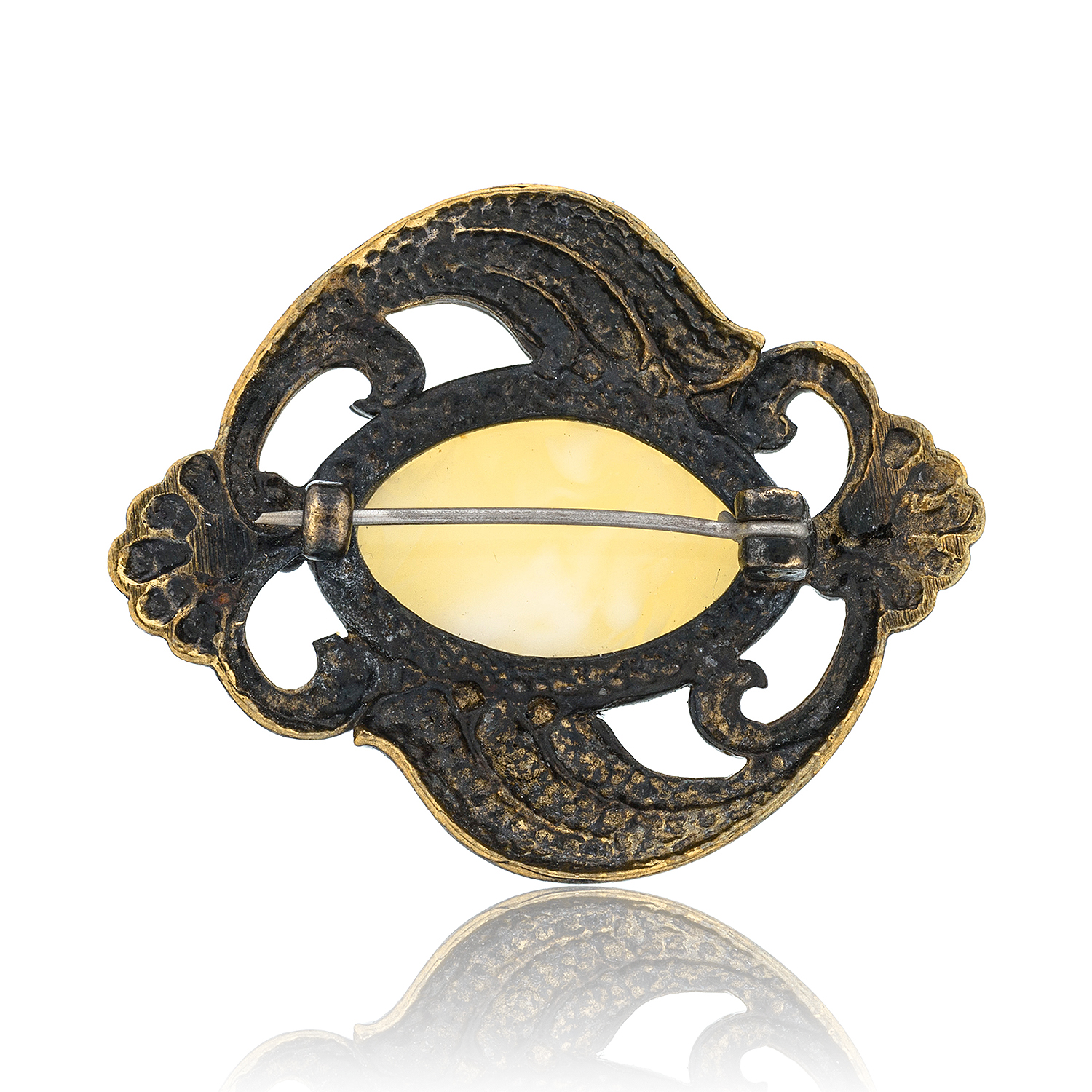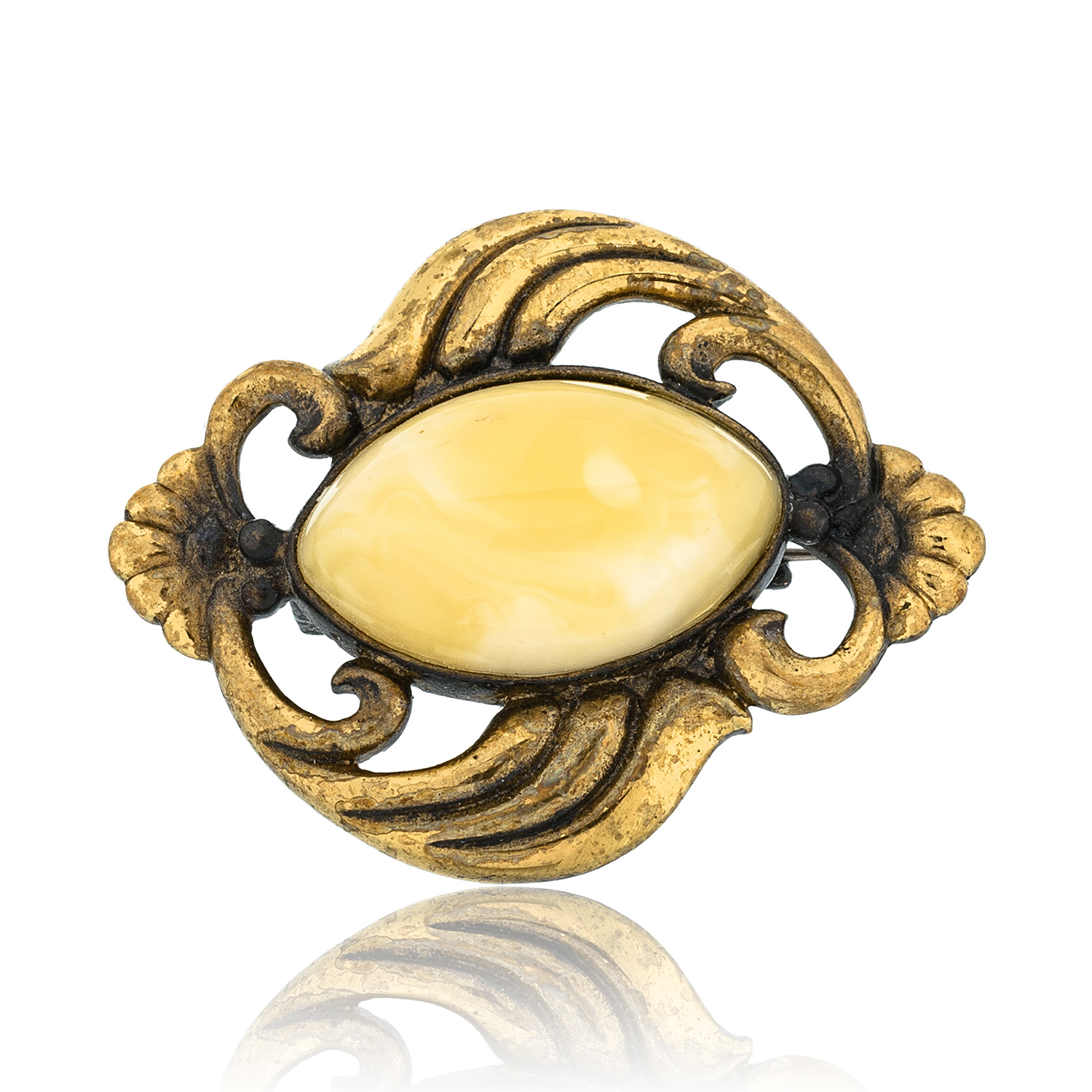 Брошь с янтарем "Виола".Материалы: латунь, янтарь.