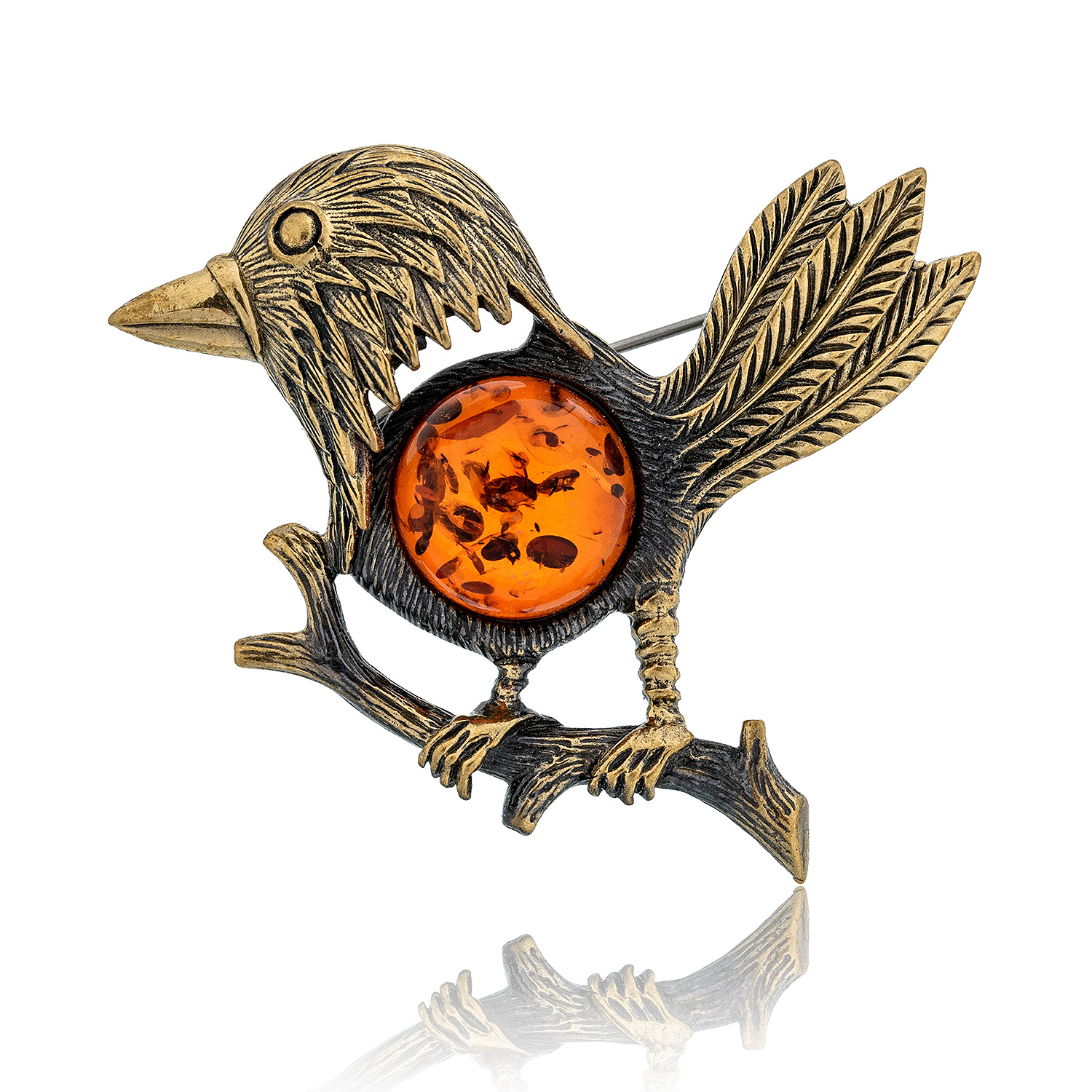 Брошь с янтарем "Ворона каркуша" (коньячный)