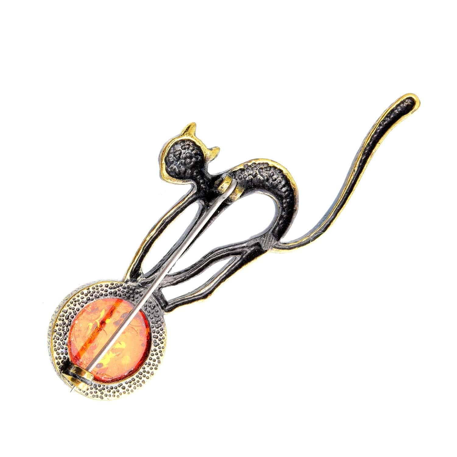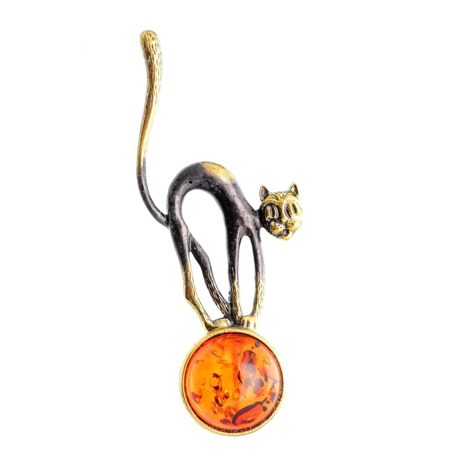 Брошь Кошечка на шаре (коньячный)