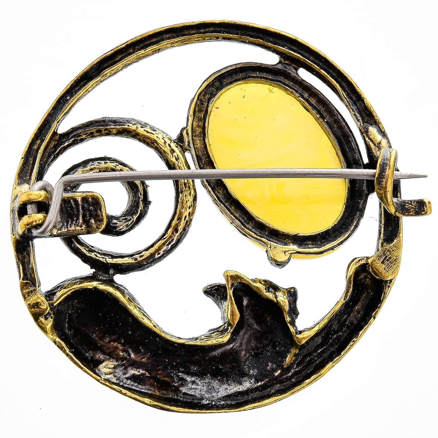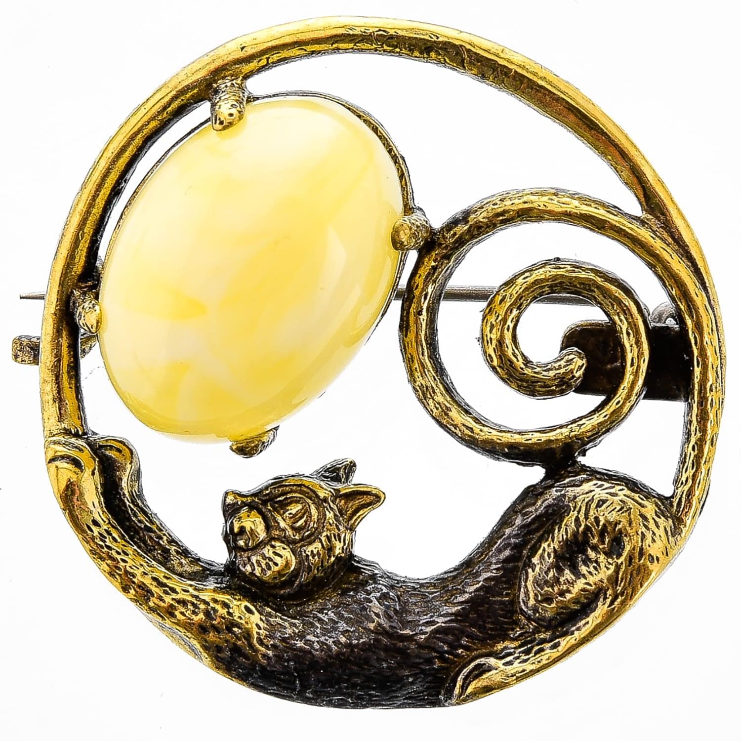 Русские подарки и сувениры → Украшения → Броши → Брошь с янтарной вставкой "Кошечка с кабошоном" (белый)