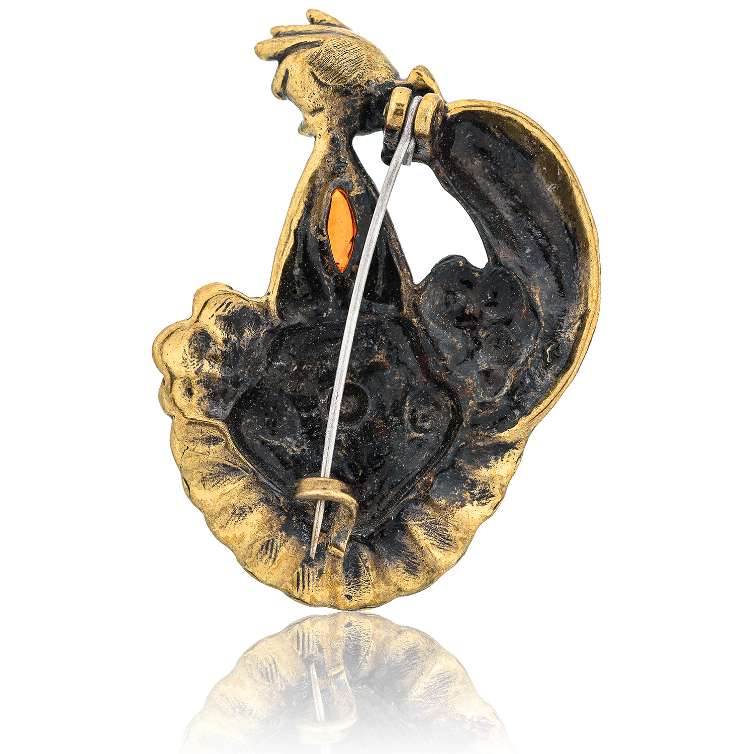 Брошь с янтарем "Клоун".Материалы: латунь, янтарь.