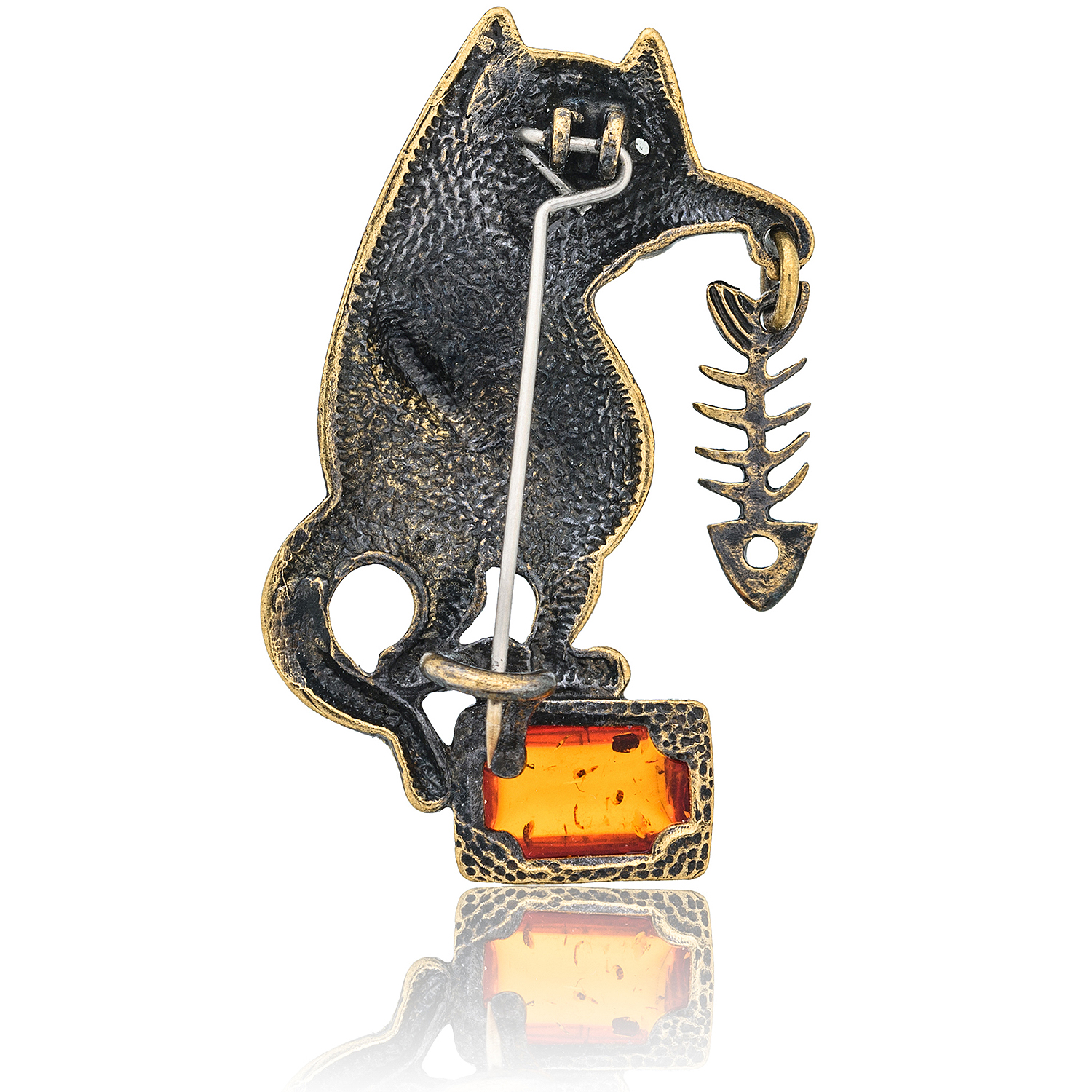 Брошь с янтарем "Сытый кот"