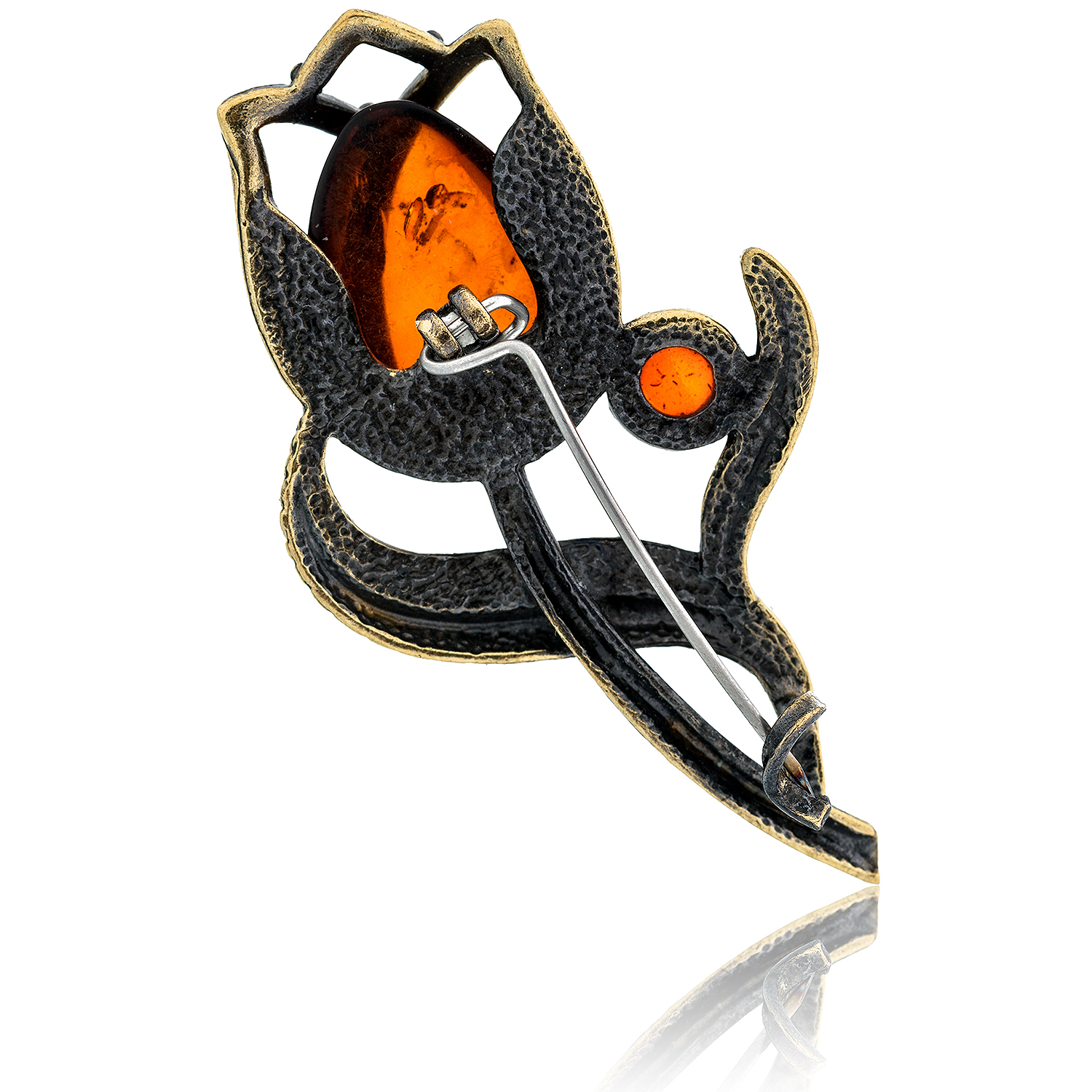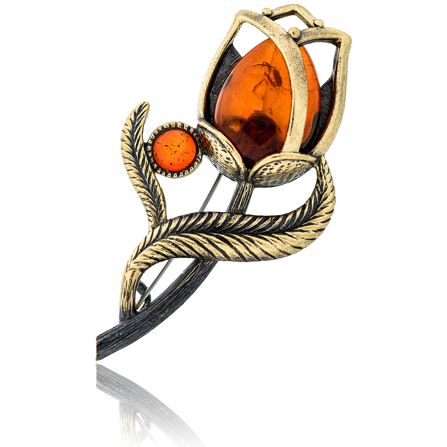 Брошь с янтарем "Тюльпан".Материалы: бронза, янтарь.