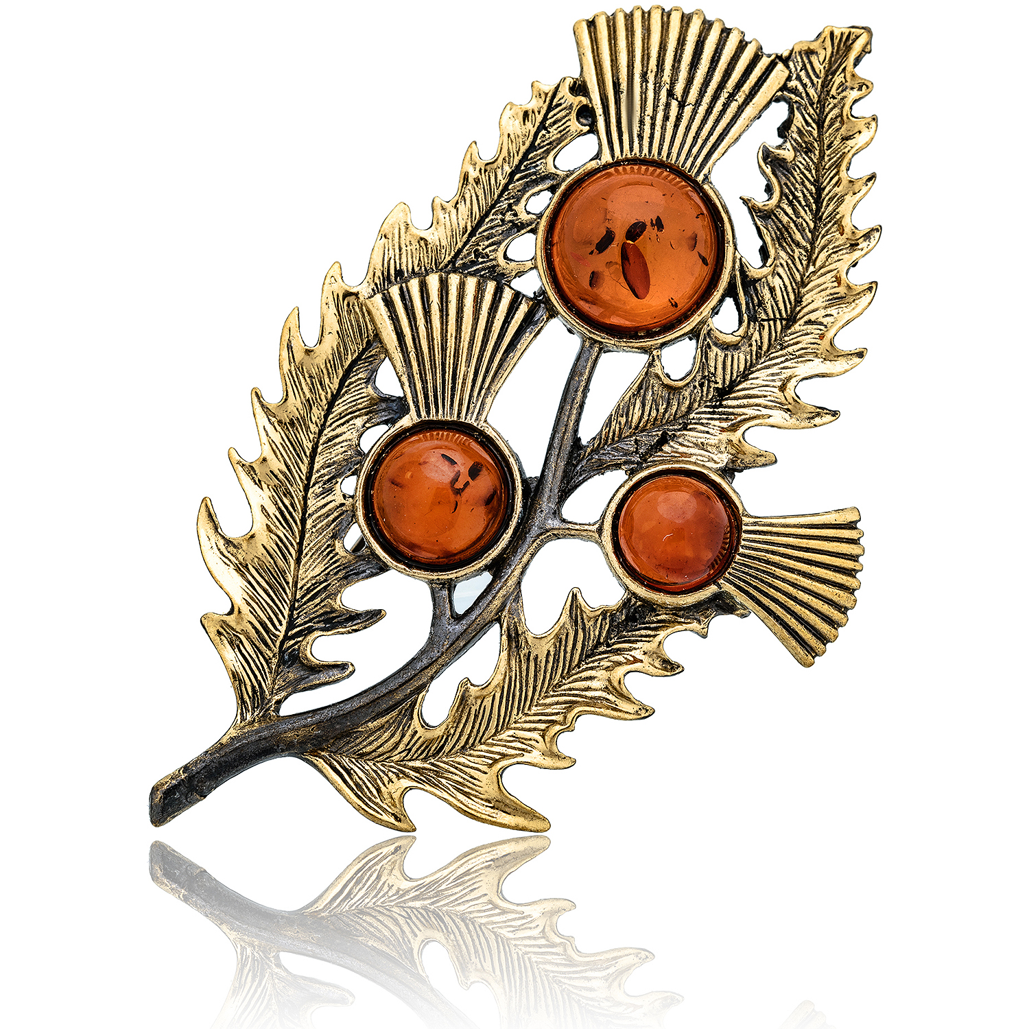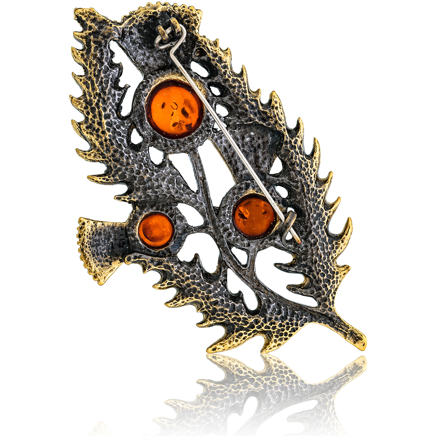 Брошь с янтарем "Бурьян"