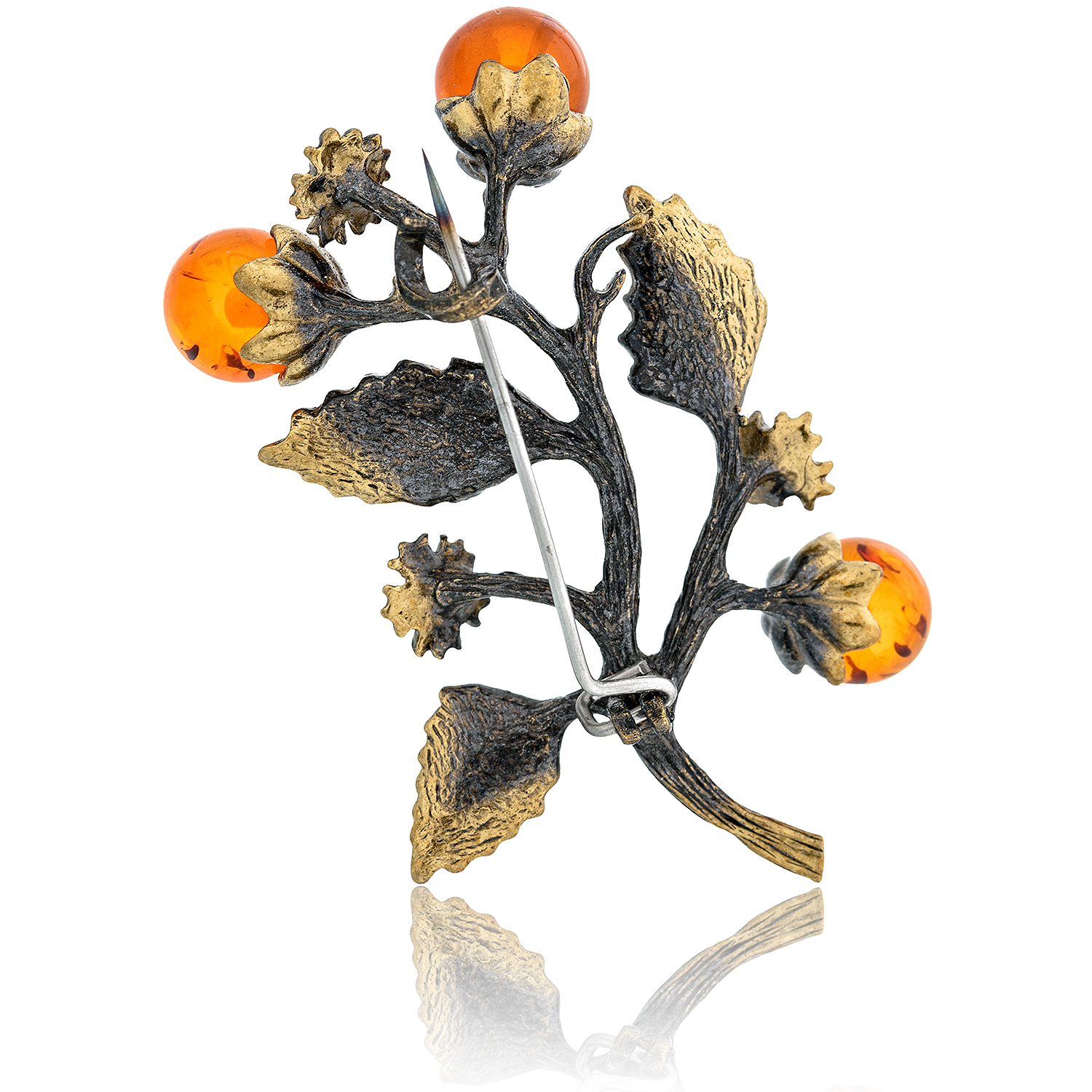 Брошь с янтарем "Веточка"