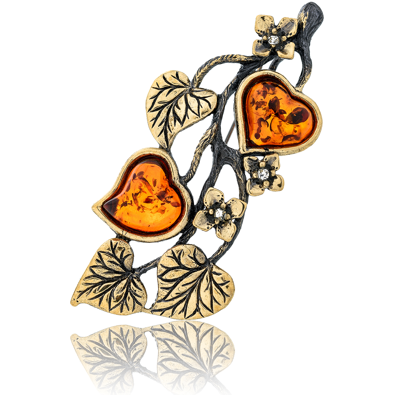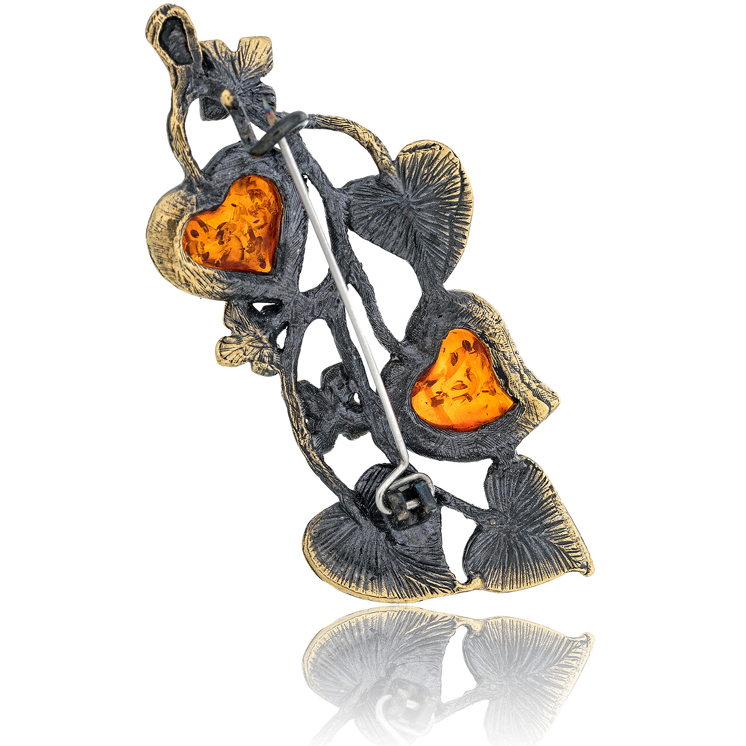 Брошь с янтарем "Веточка сирени" (коньячный)