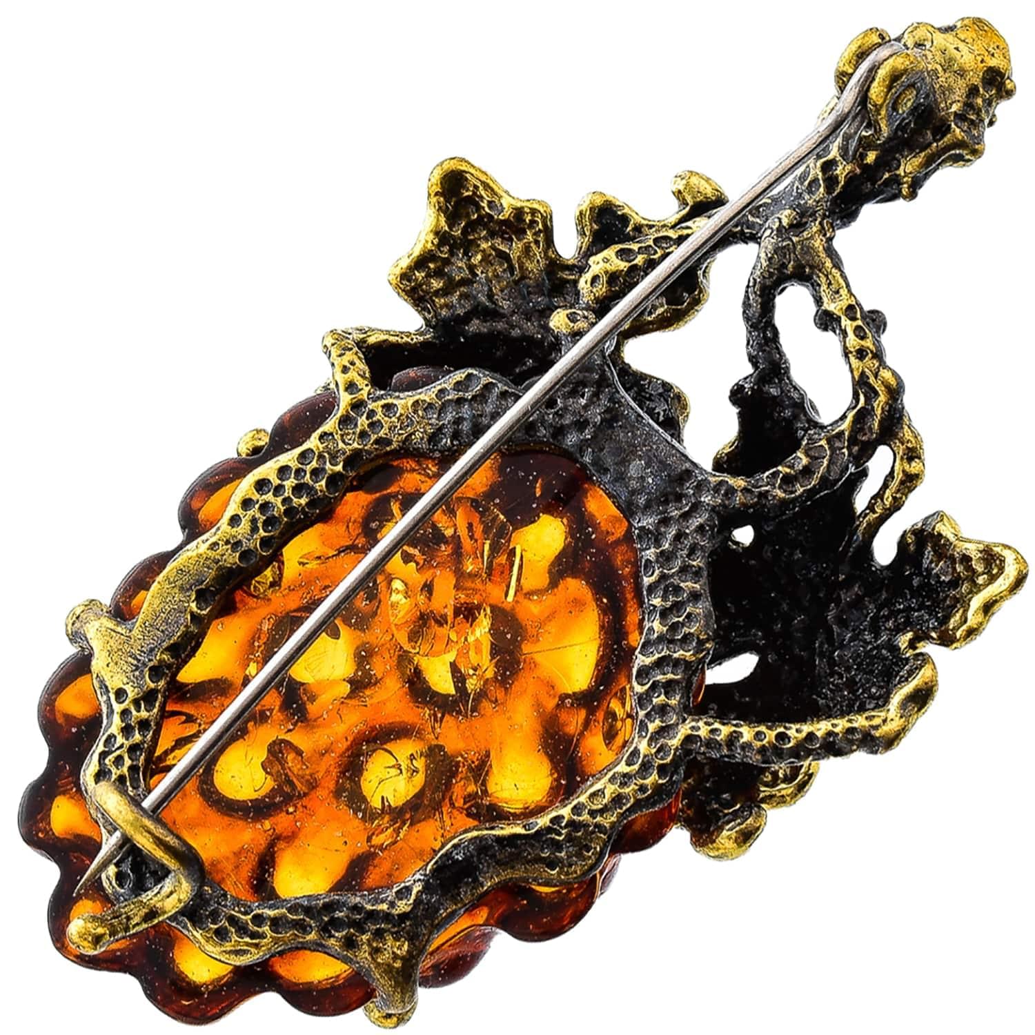 Брошь с янтарной вставкой "Виноград большой" (коньячный)