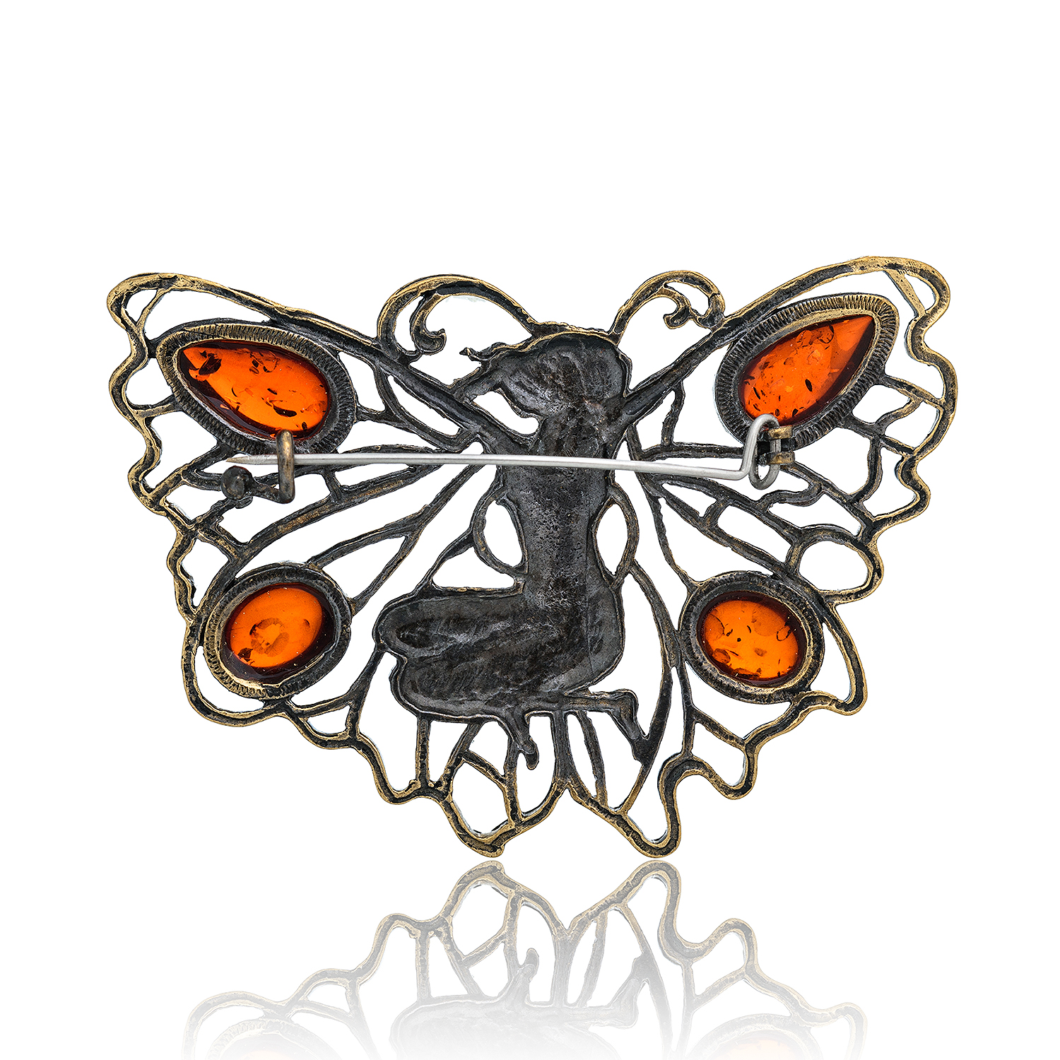 Брошь с янтарем "Бабочка - спящая фея".Материалы: латунь, янтарь.