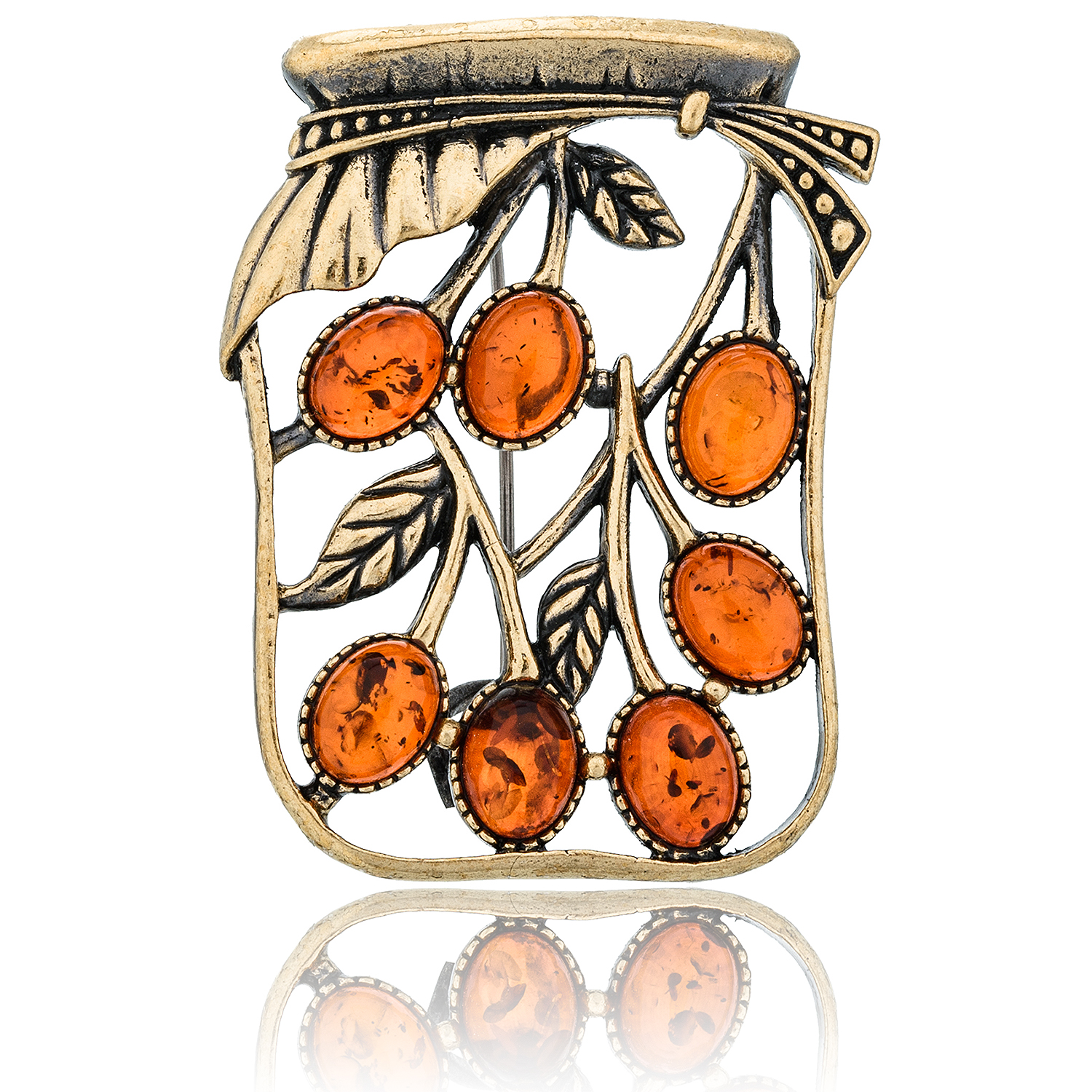 Брошь с янтарем "Баночка вишневого варенья"
