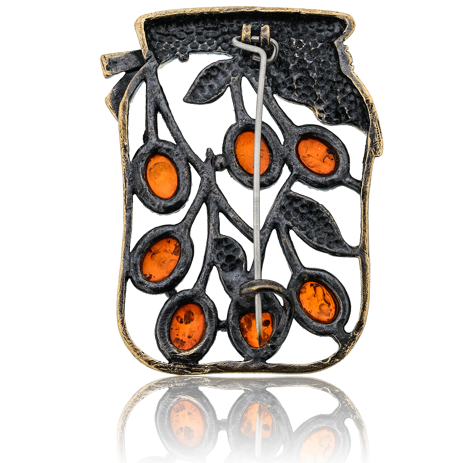 Брошь с янтарем "Баночка вишневого варенья".Материалы: бронза, янтарь.