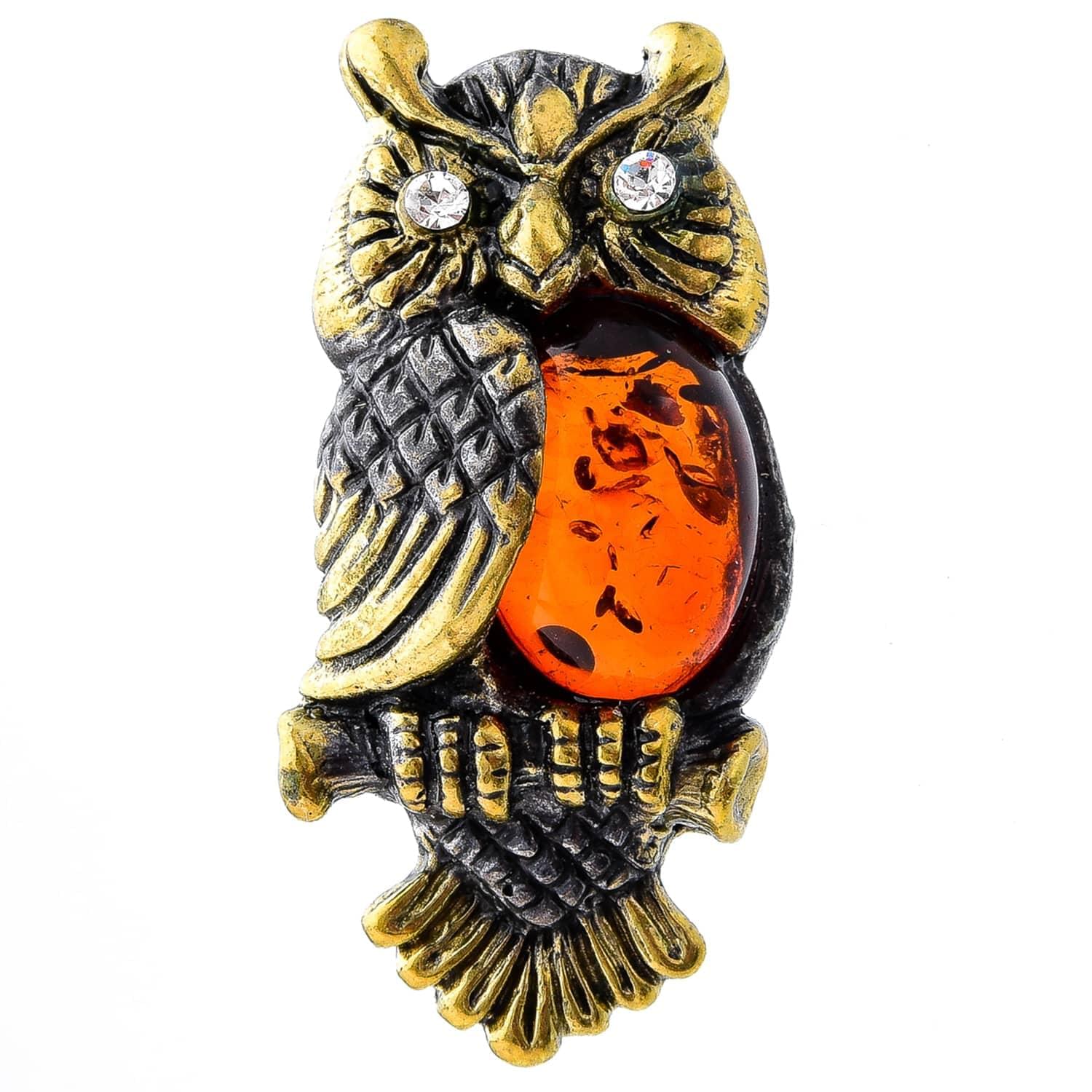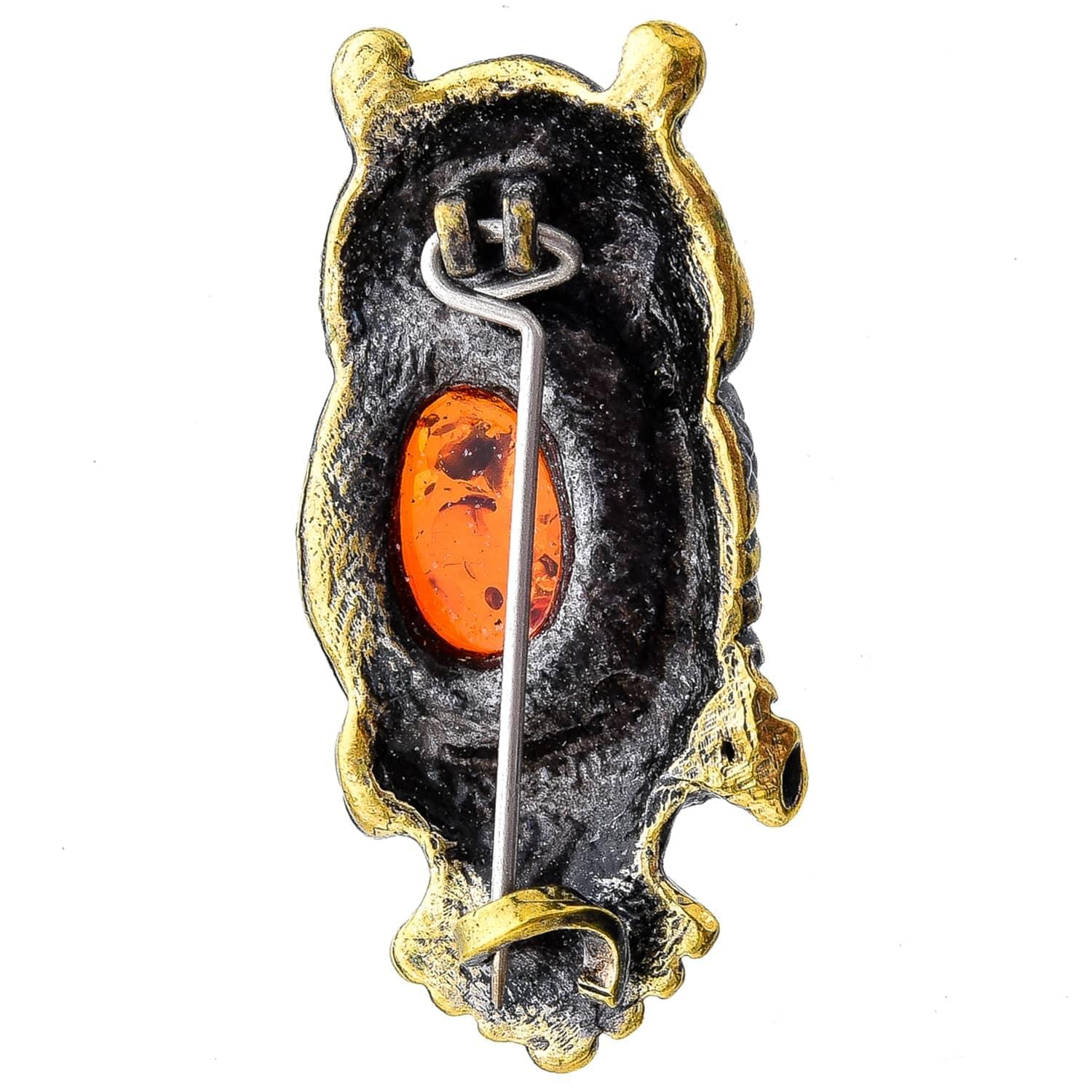 Брошь с янтарной вставкой "Совушка на ветке" (коньячный)