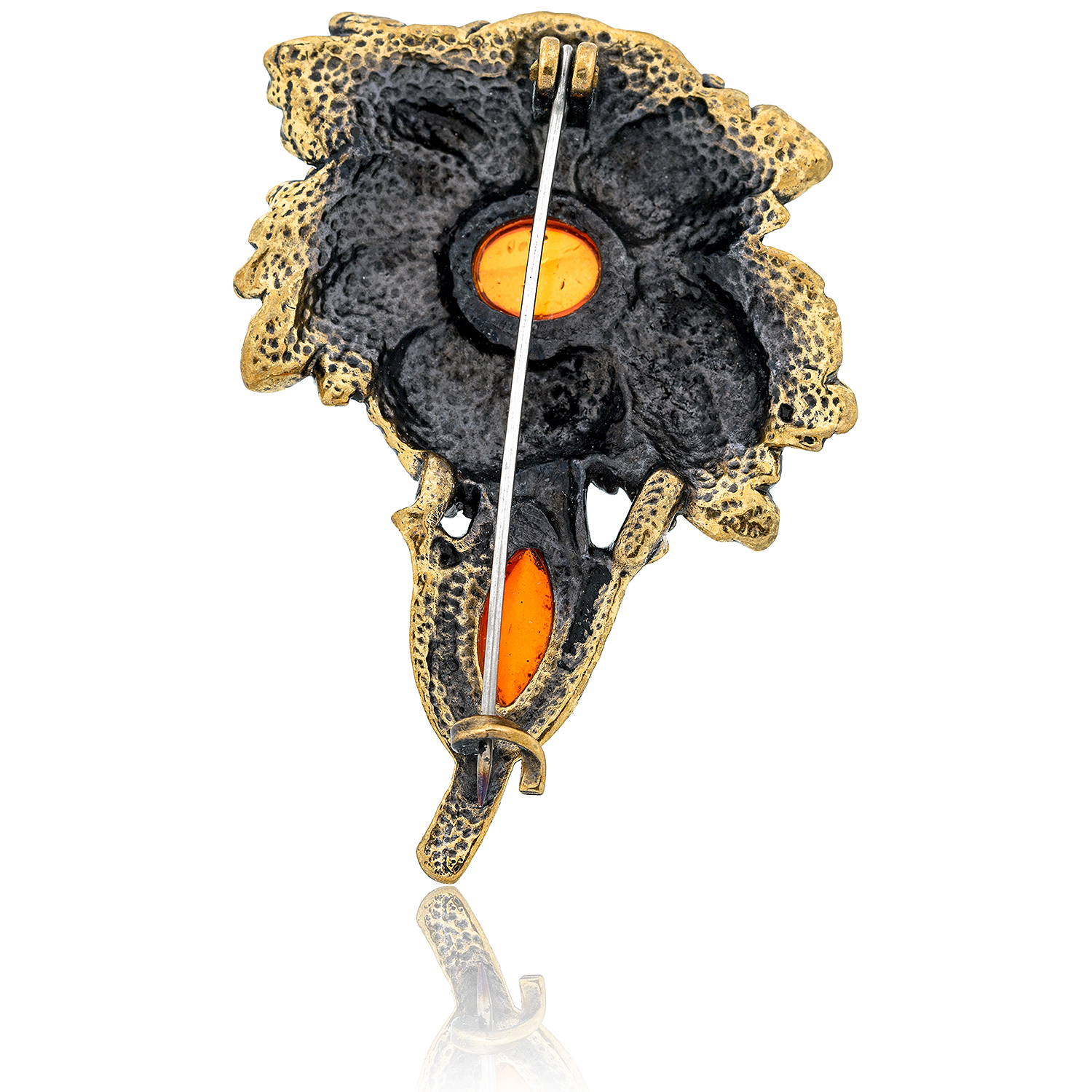 Брошь с янтарем "Нарцисс".Материалы: бронза, янтарь.