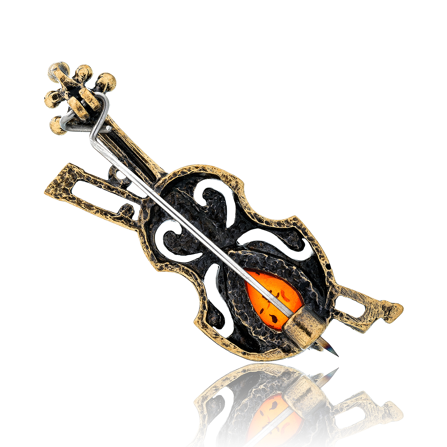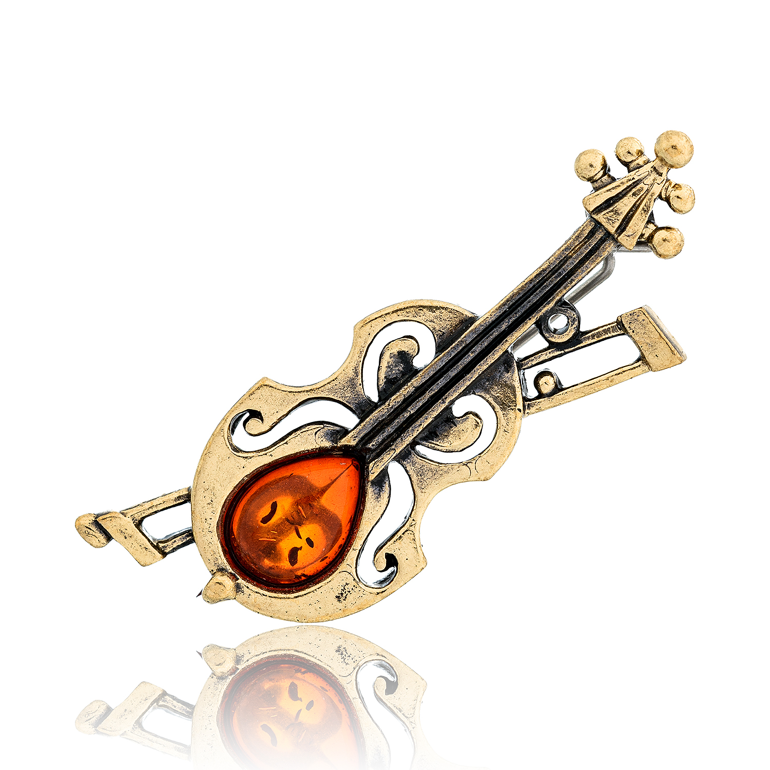 Брошь с янтарем "Скрипка Амати"