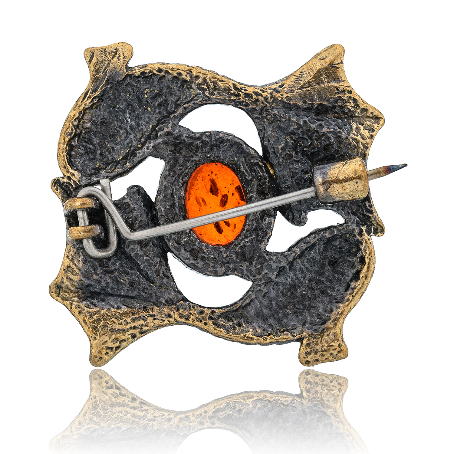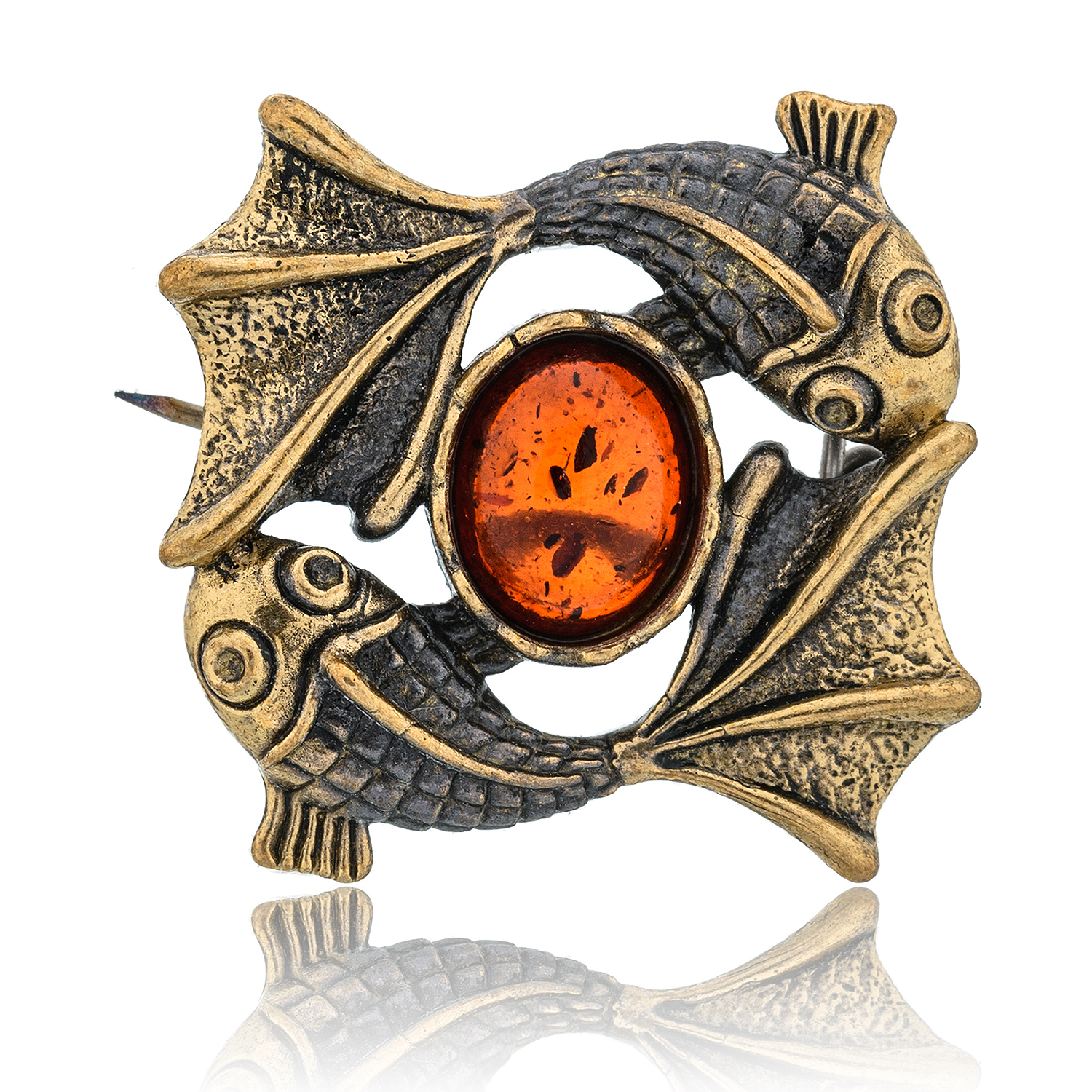 Брошь с янтарем "Рыбы" Знак зодиака (коньячный)