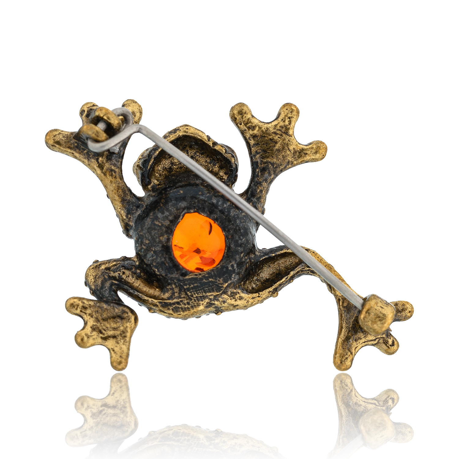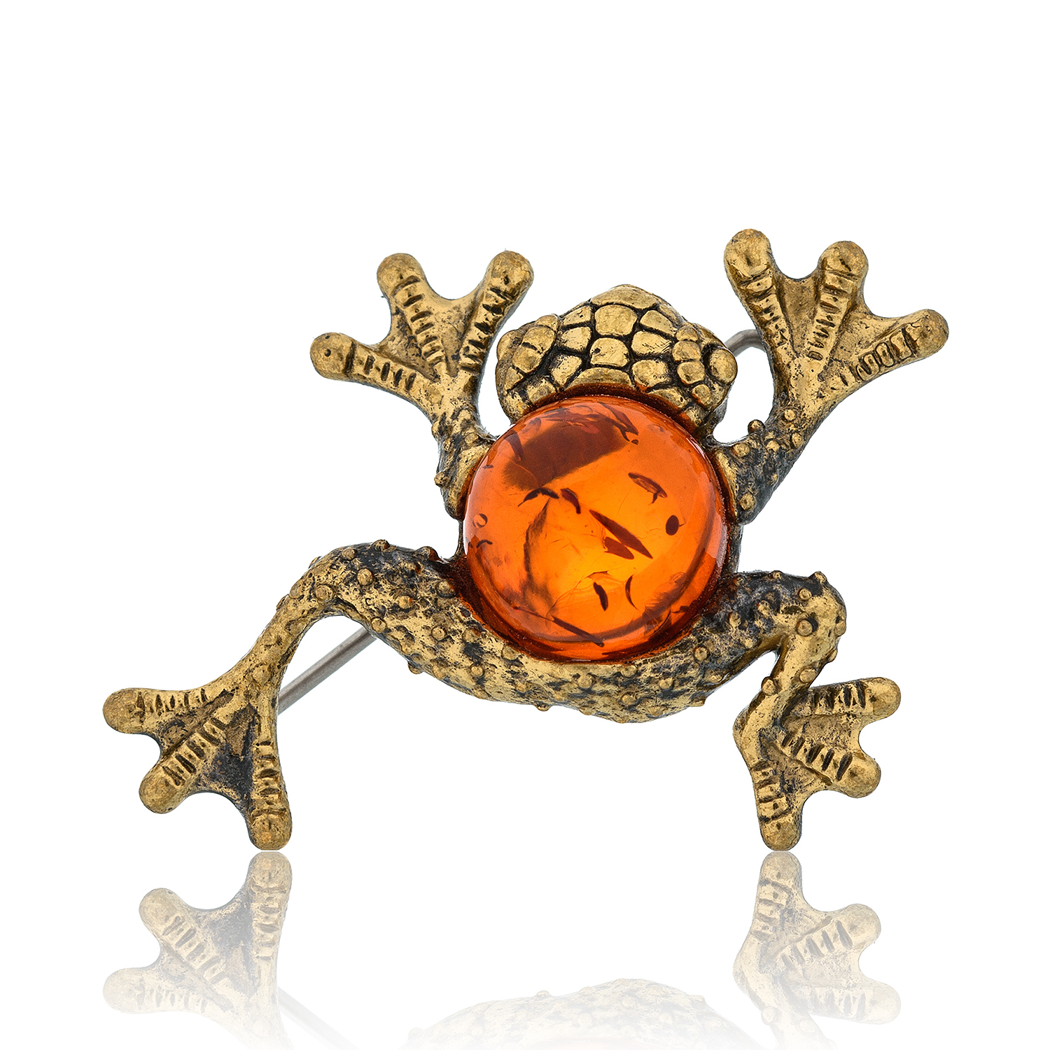 Брошь с янтарем "Лягушка Пузатик".Материалы: латунь, янтарь.