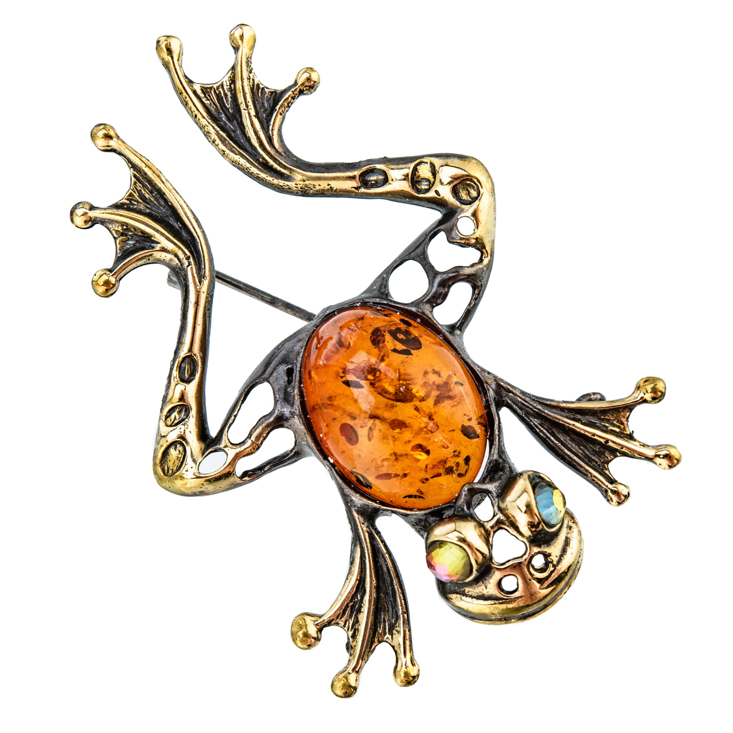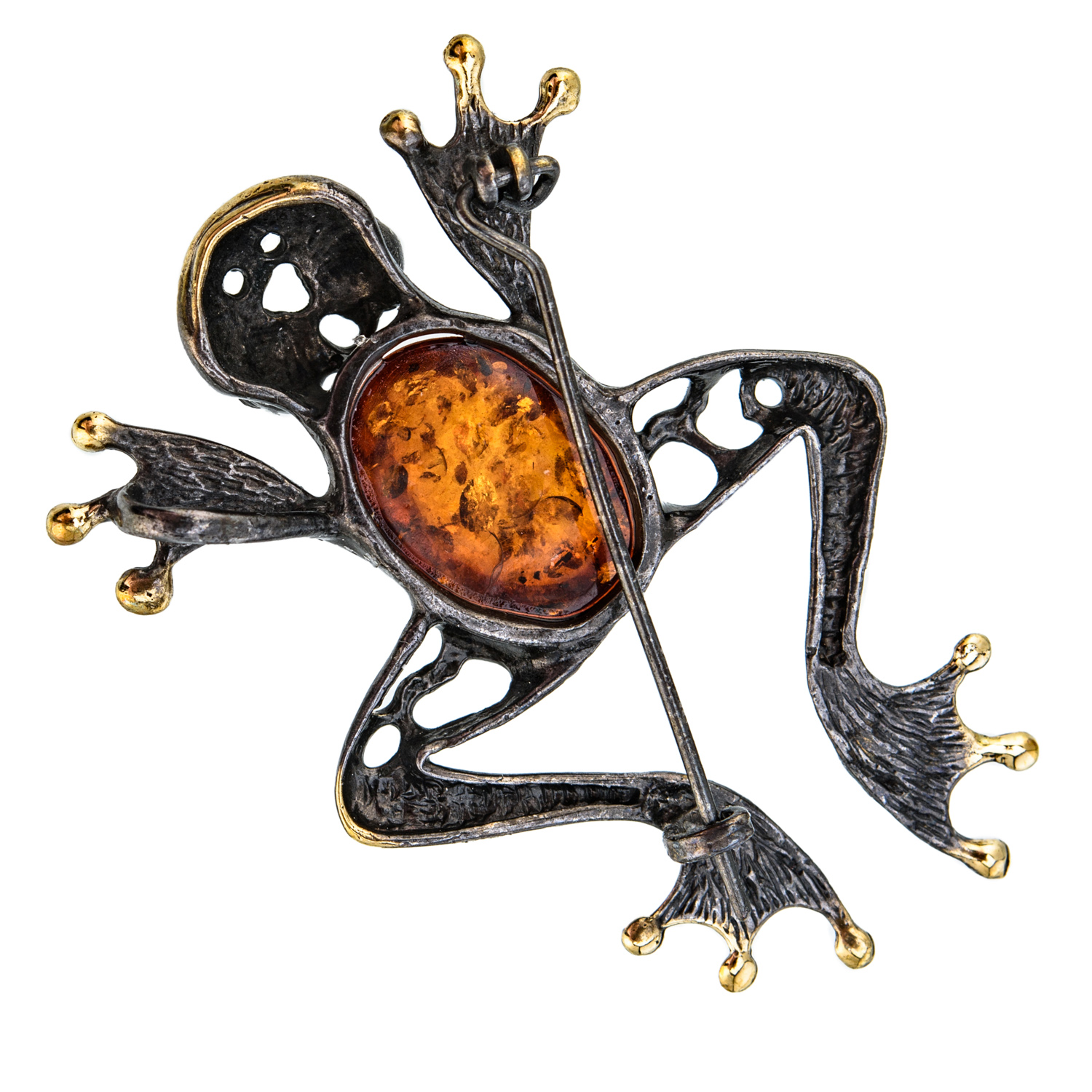 Брошь с янтарем "Лягушка"