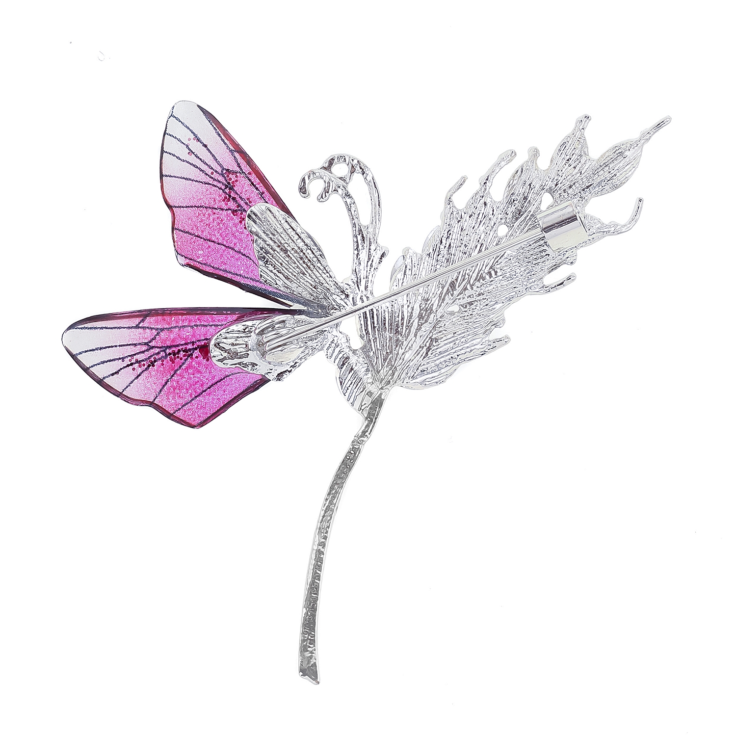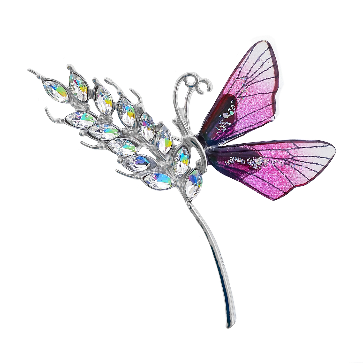 Брошь со стразами "Бабочка на колоске".Материалы: металл, полиэфирная смола, стразы.