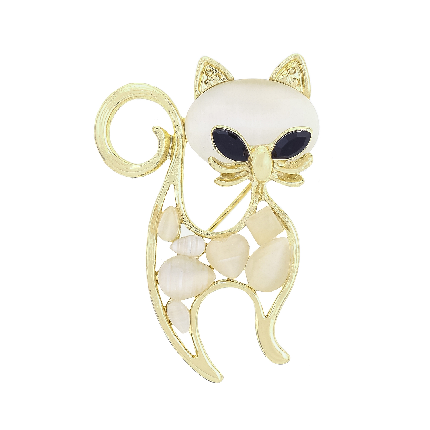 Брошь с камнями "Кошка"