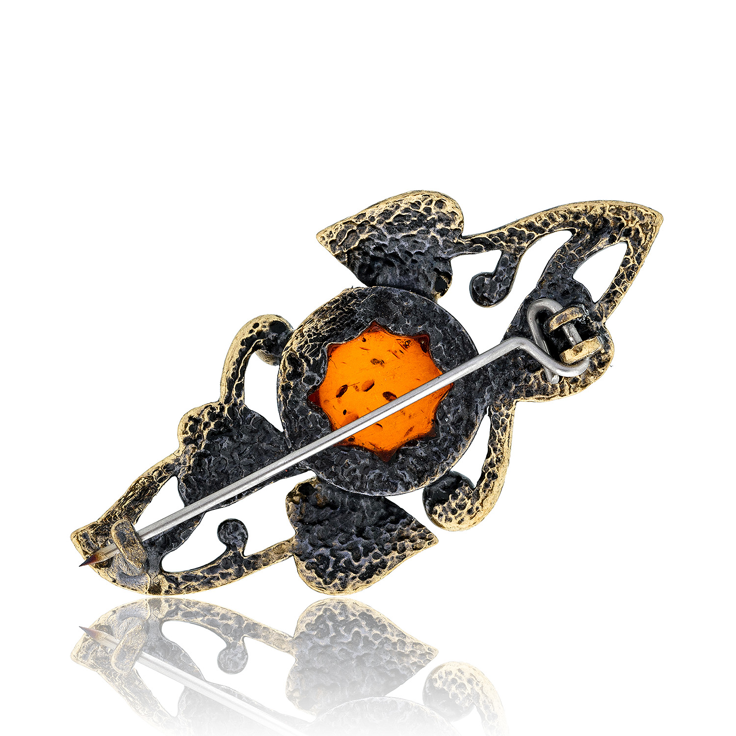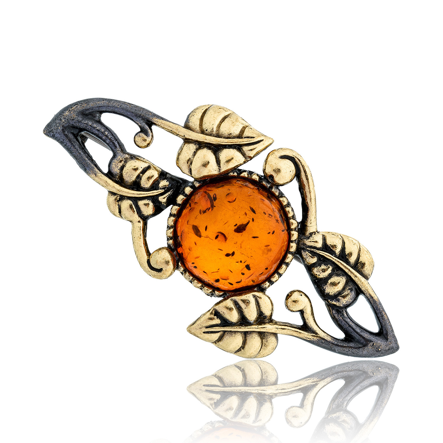 Брошь с янтарем "Вьюнок сирени" (коньячный)