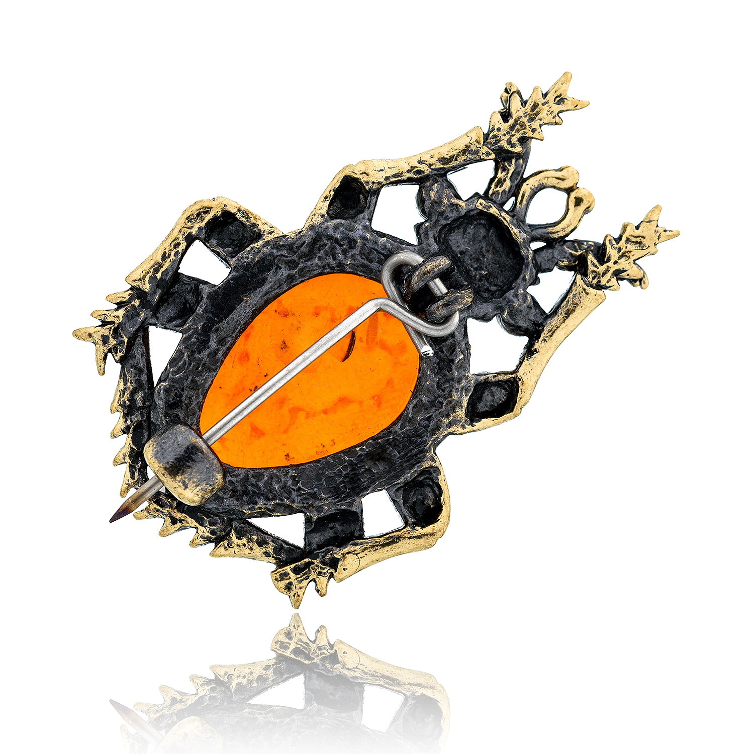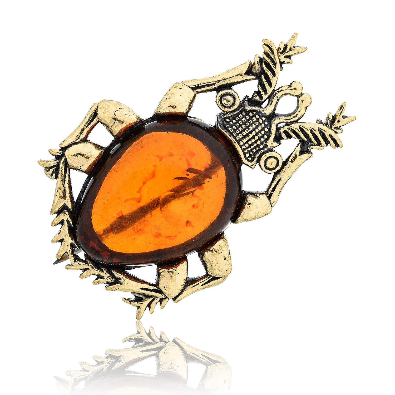Брошь с янтарем "Жук Ольхоед" (коньячный)