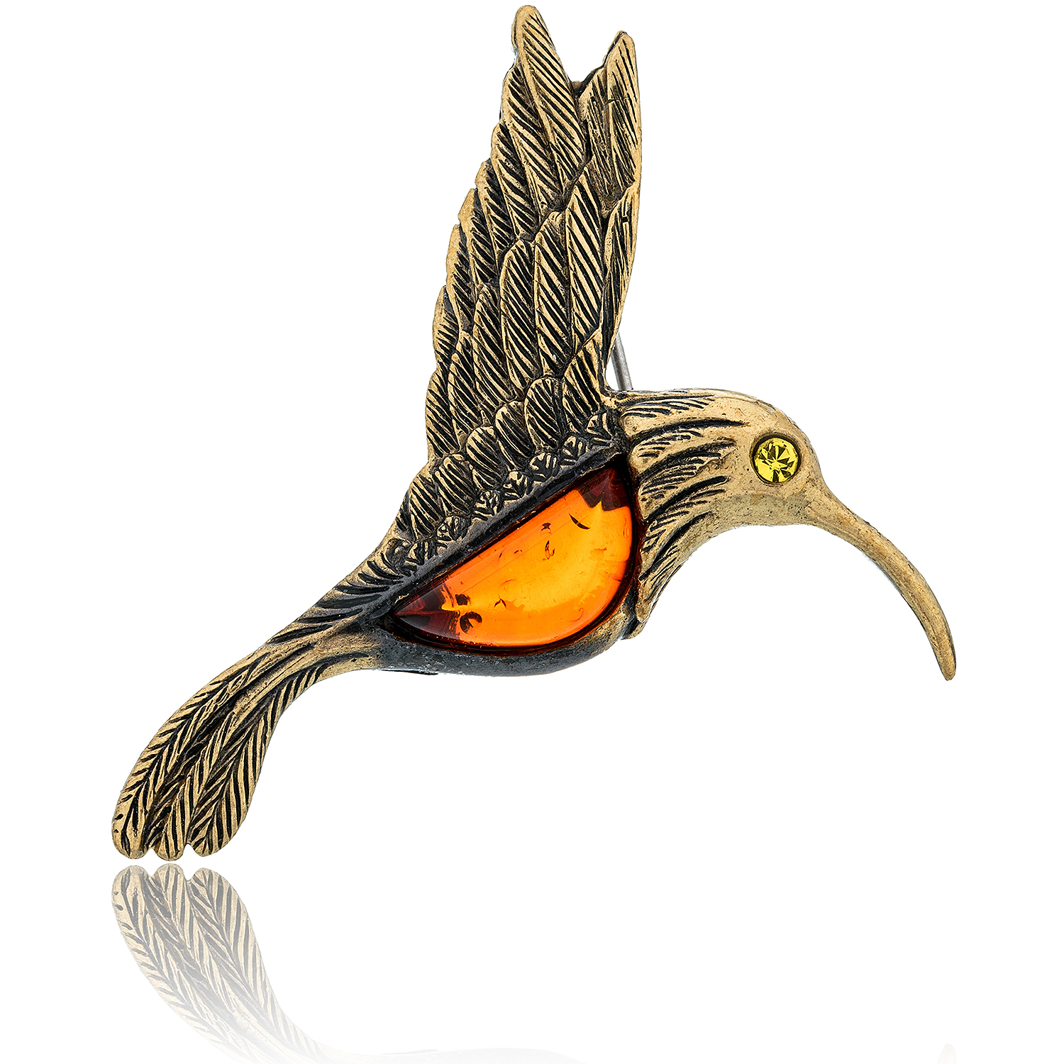 Брошь с янтарем "Колибри" (коньячный)