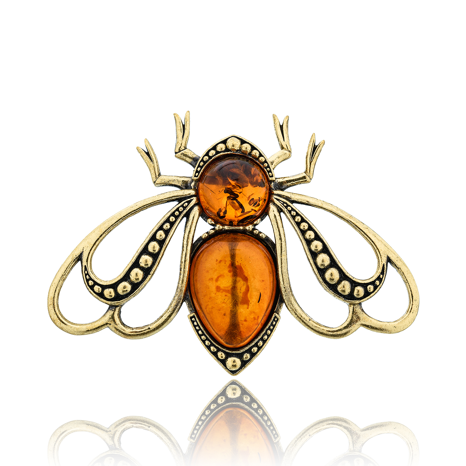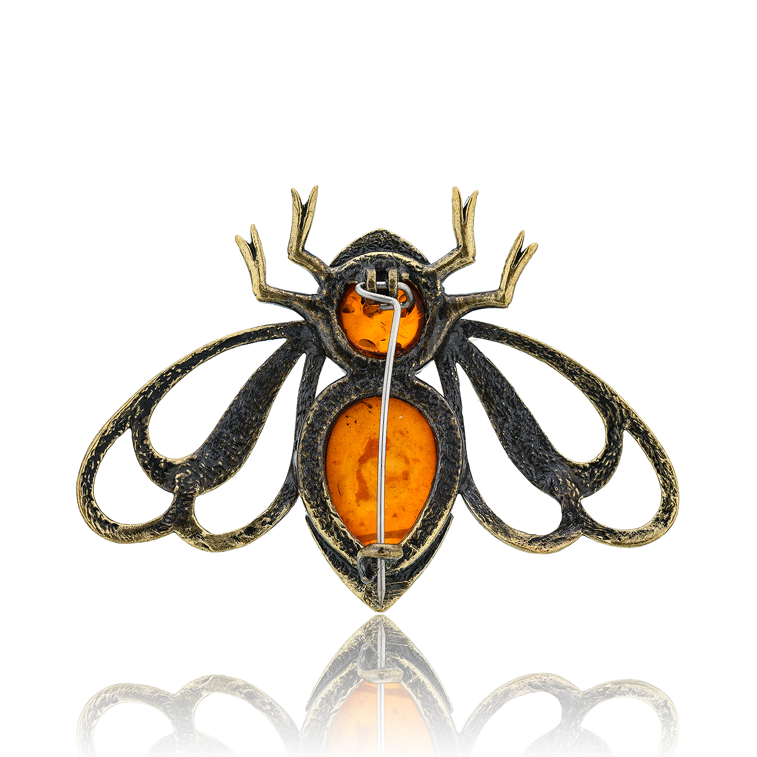 Брошь с янтарем "Мотылек Мгновение" (коньячный)