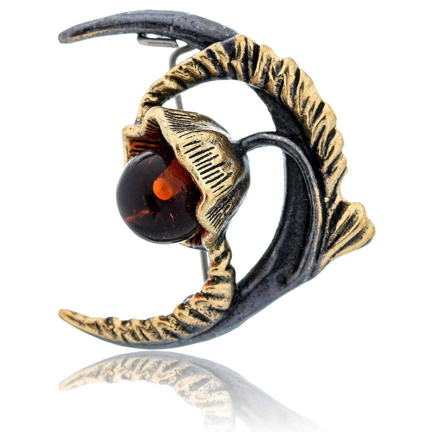 Брошь с янтарем "Лунный цветок"