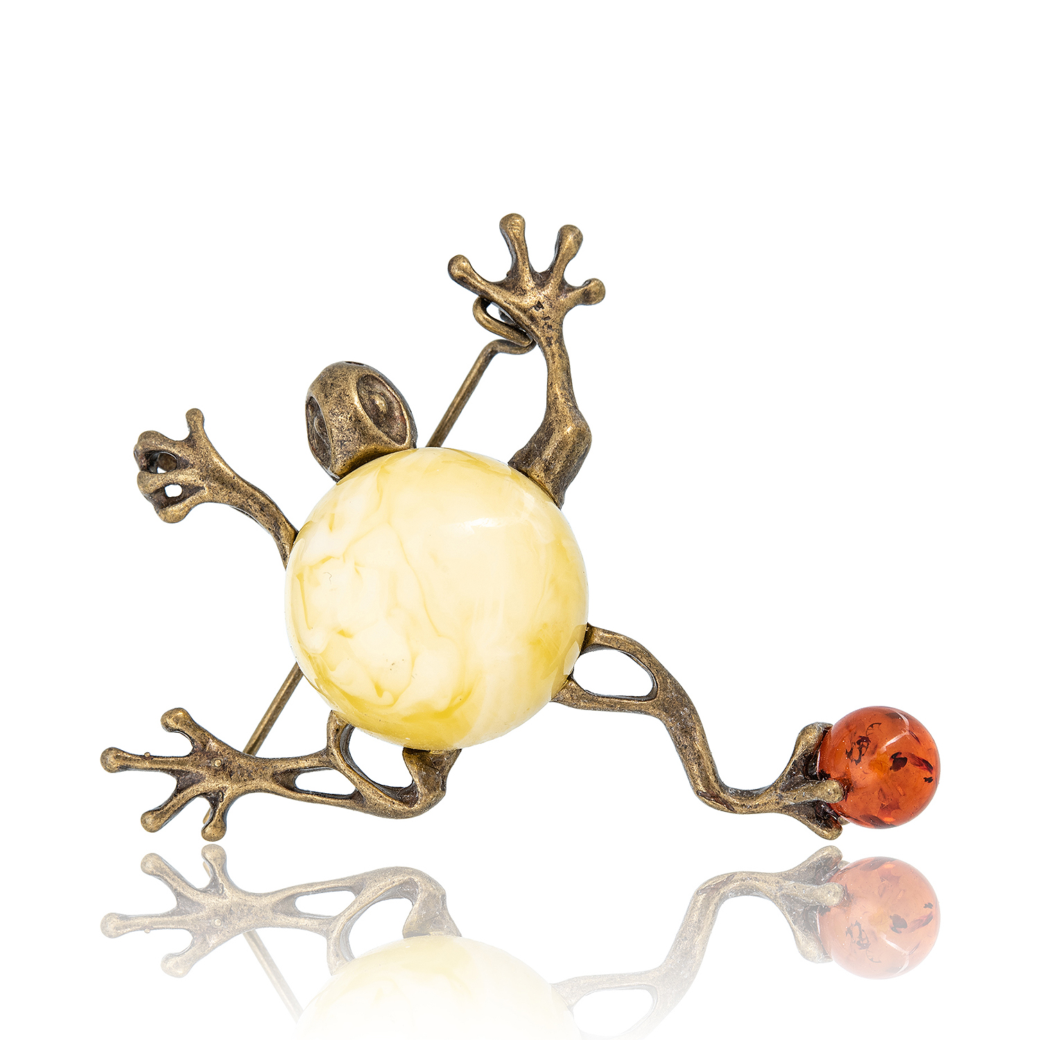 Брошь с янтарной вставкой "Лягушка Пузатик"