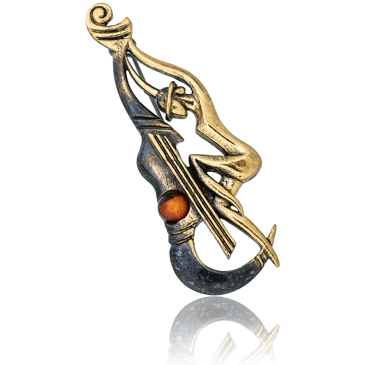 Брошь с янтарной вставкой "Девушка Джаз".