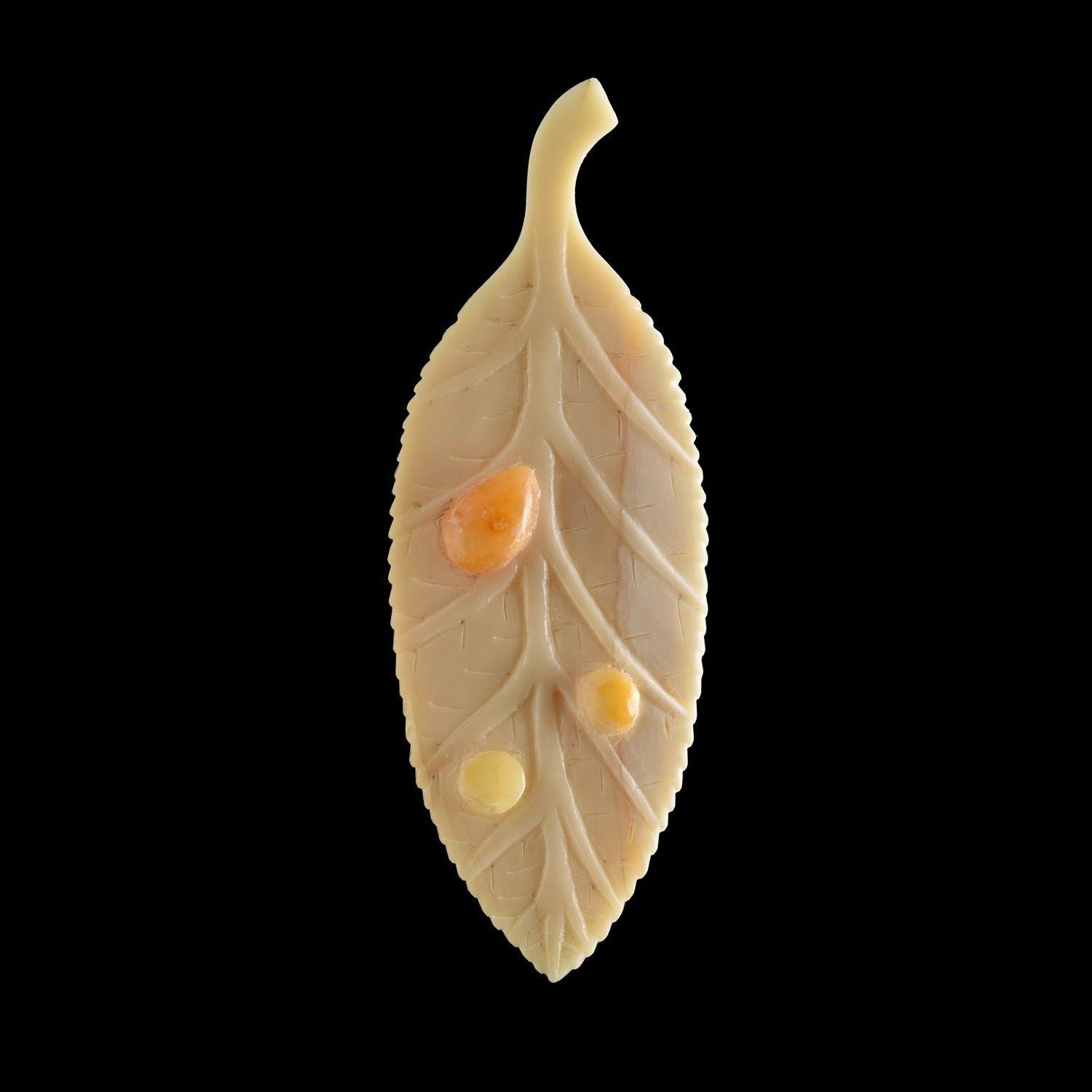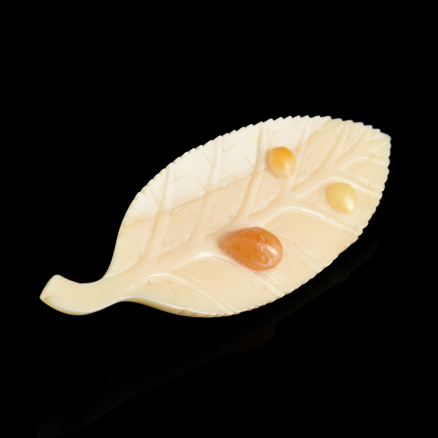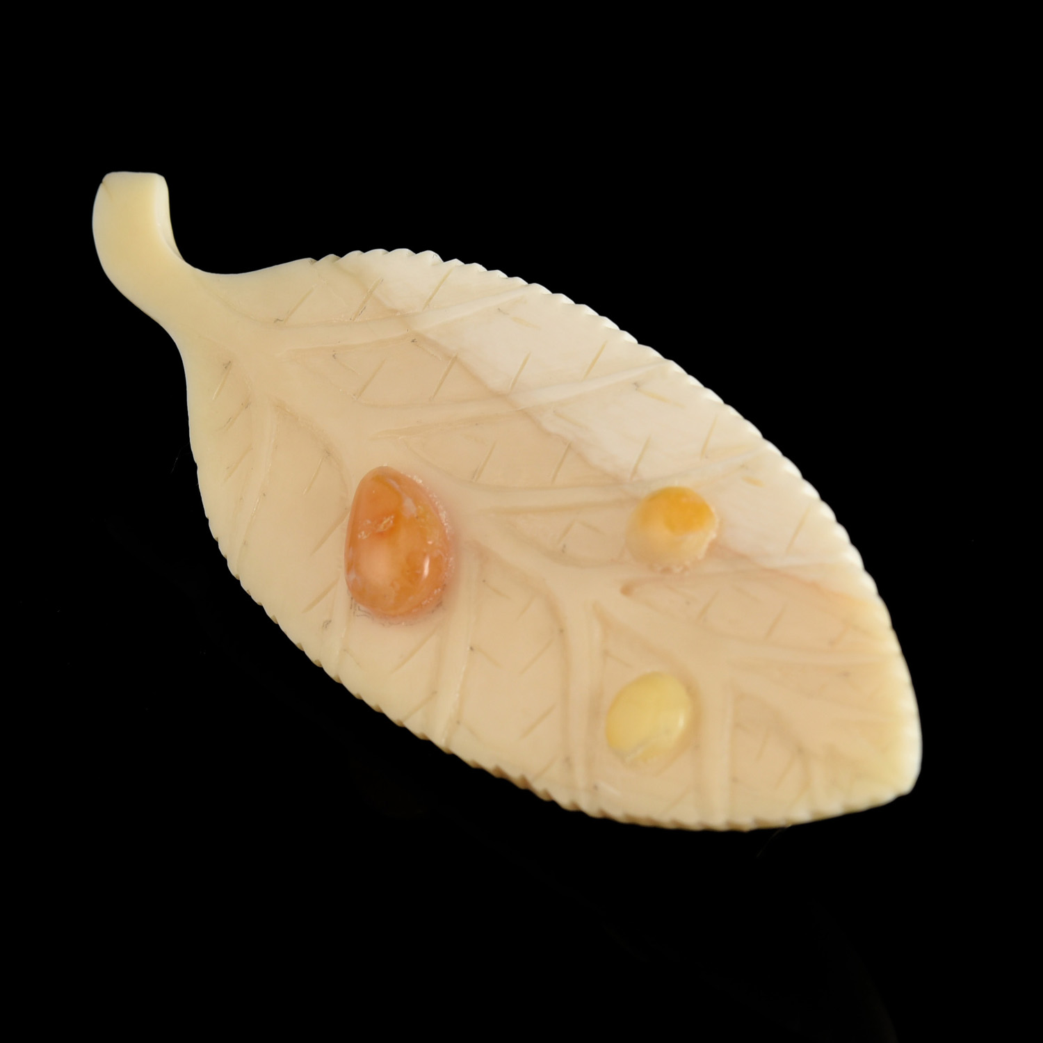 Брошь из бивня мамонта "Лист ивы".Материалы: бивень мамонта, янтарь.