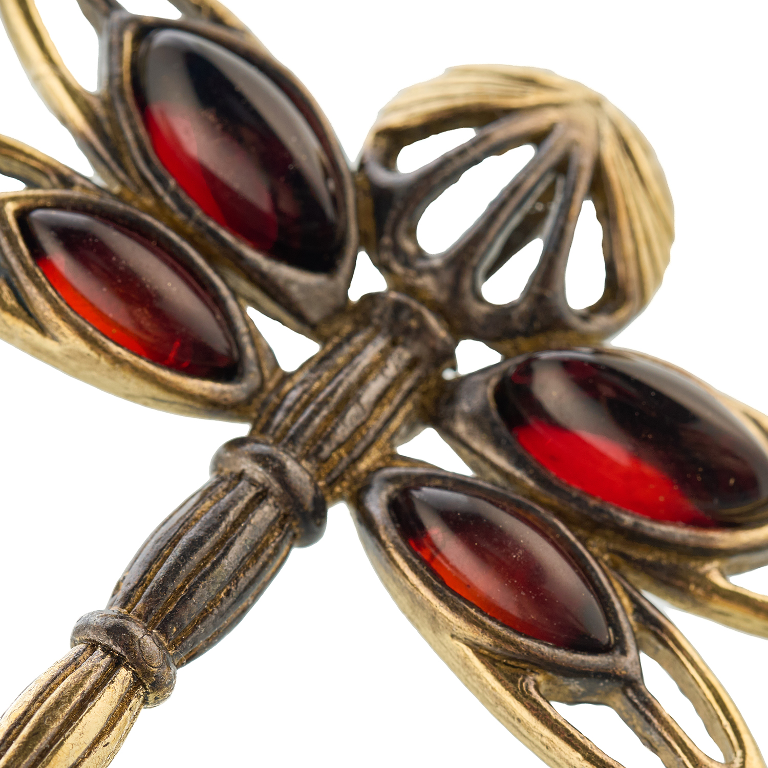 Брошь с янтарем "Ключик. Стрекоза"