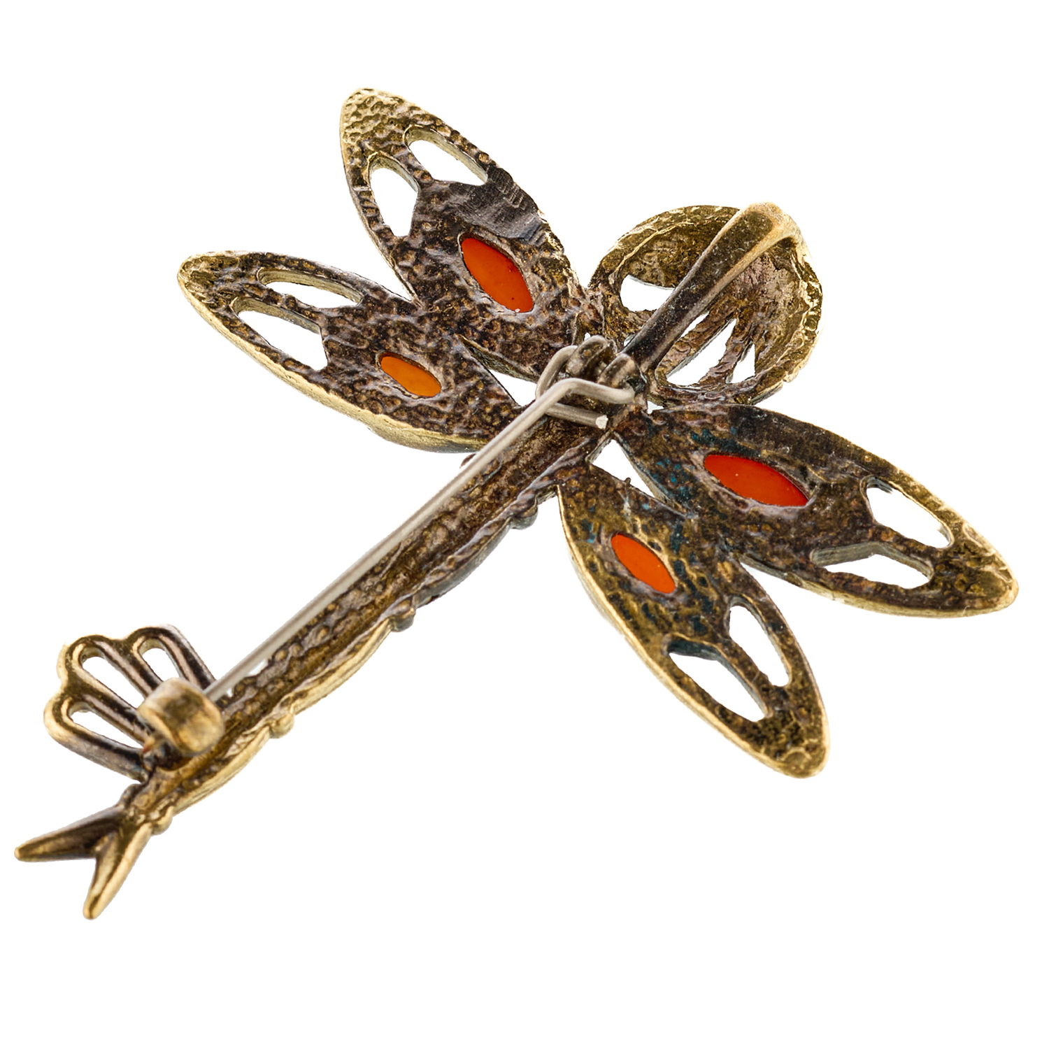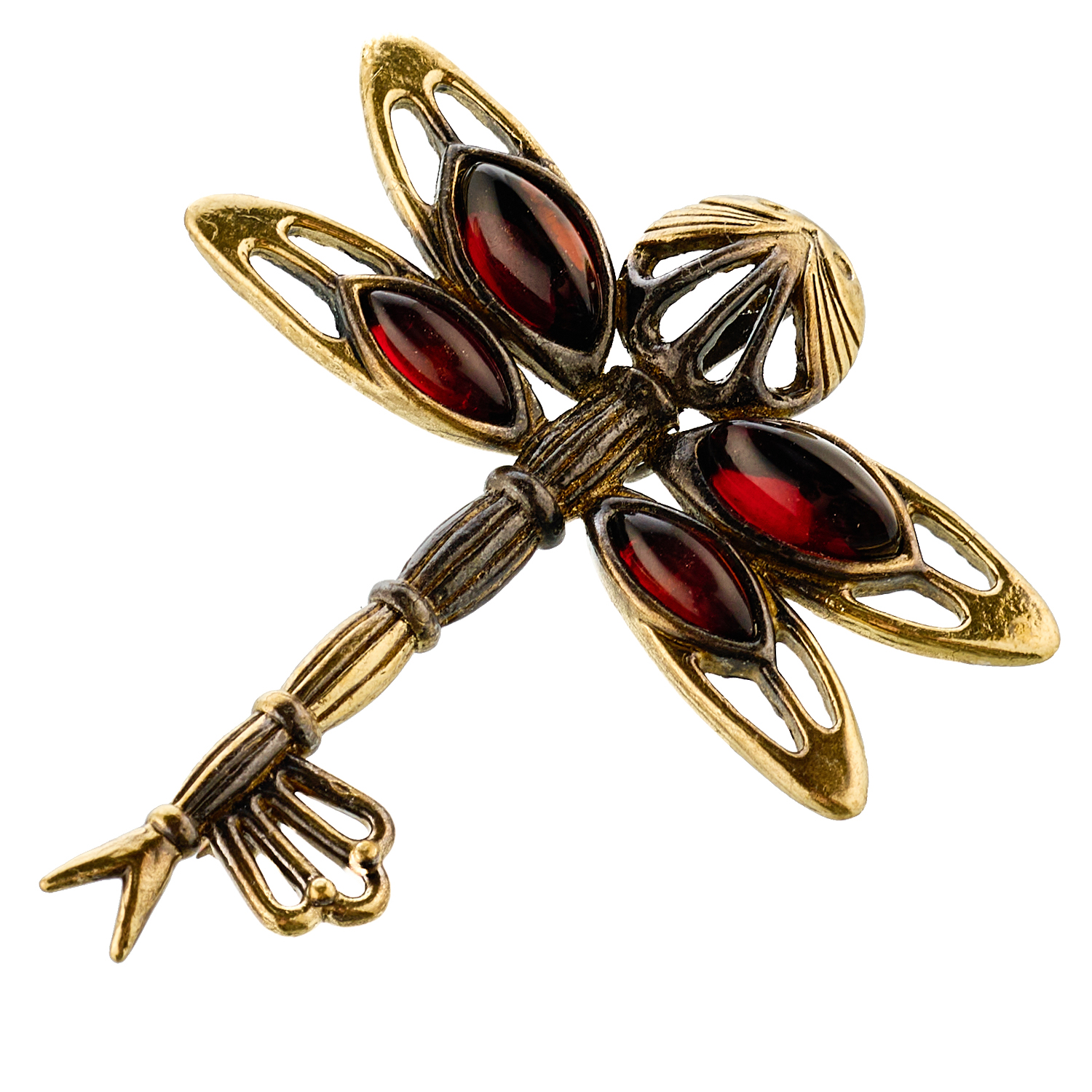 Брошь с янтарем "Ключик. Стрекоза".Материалы: бронза, янтарь.