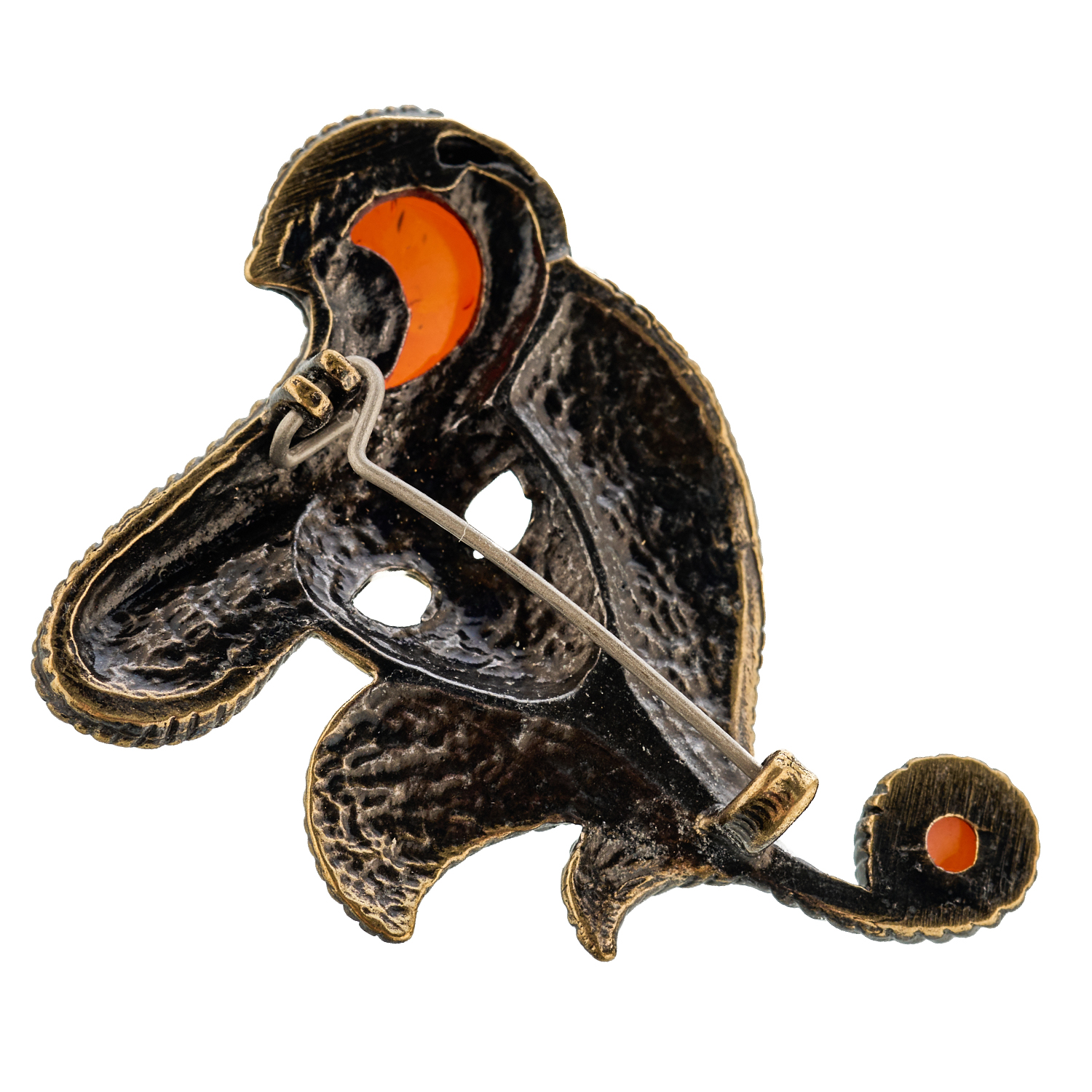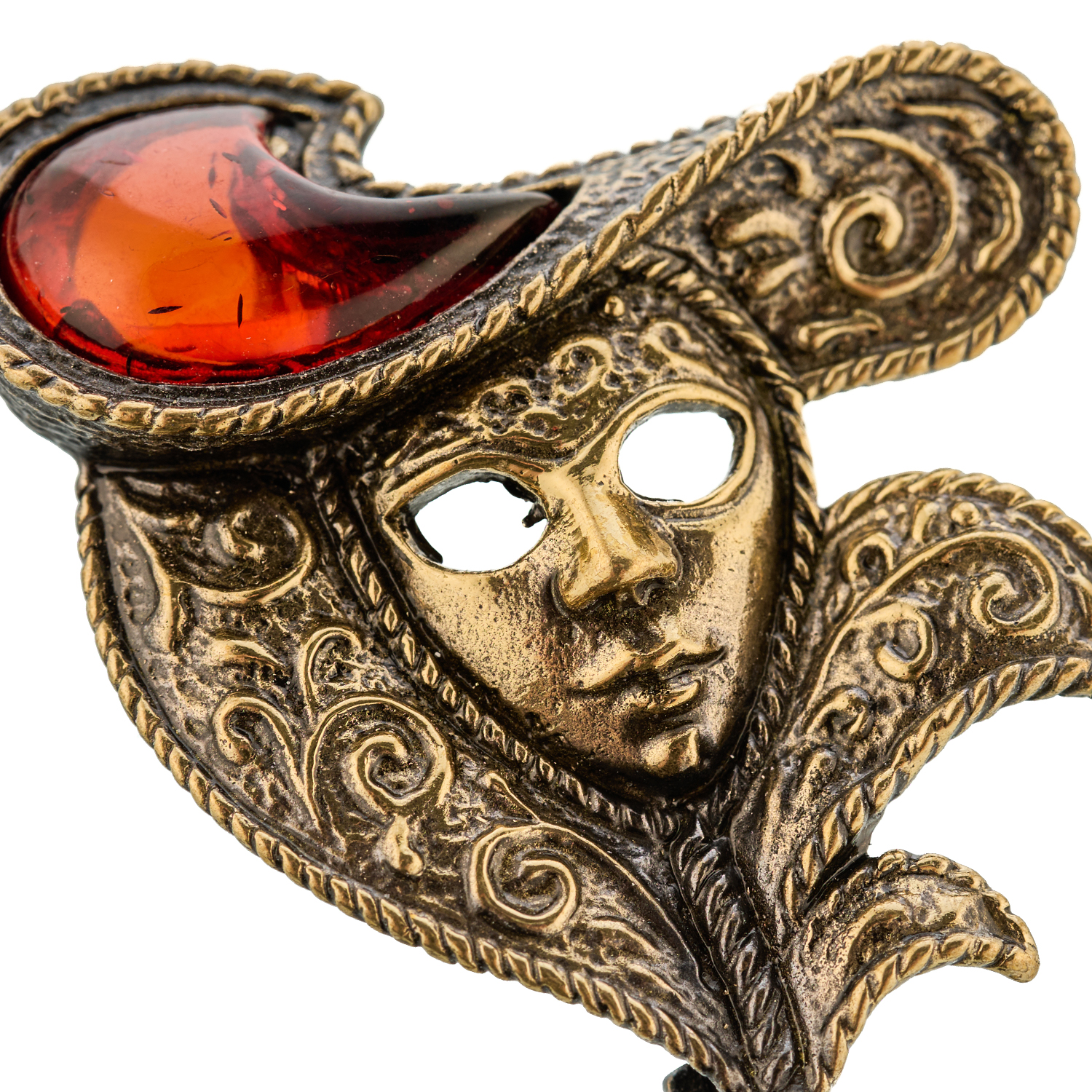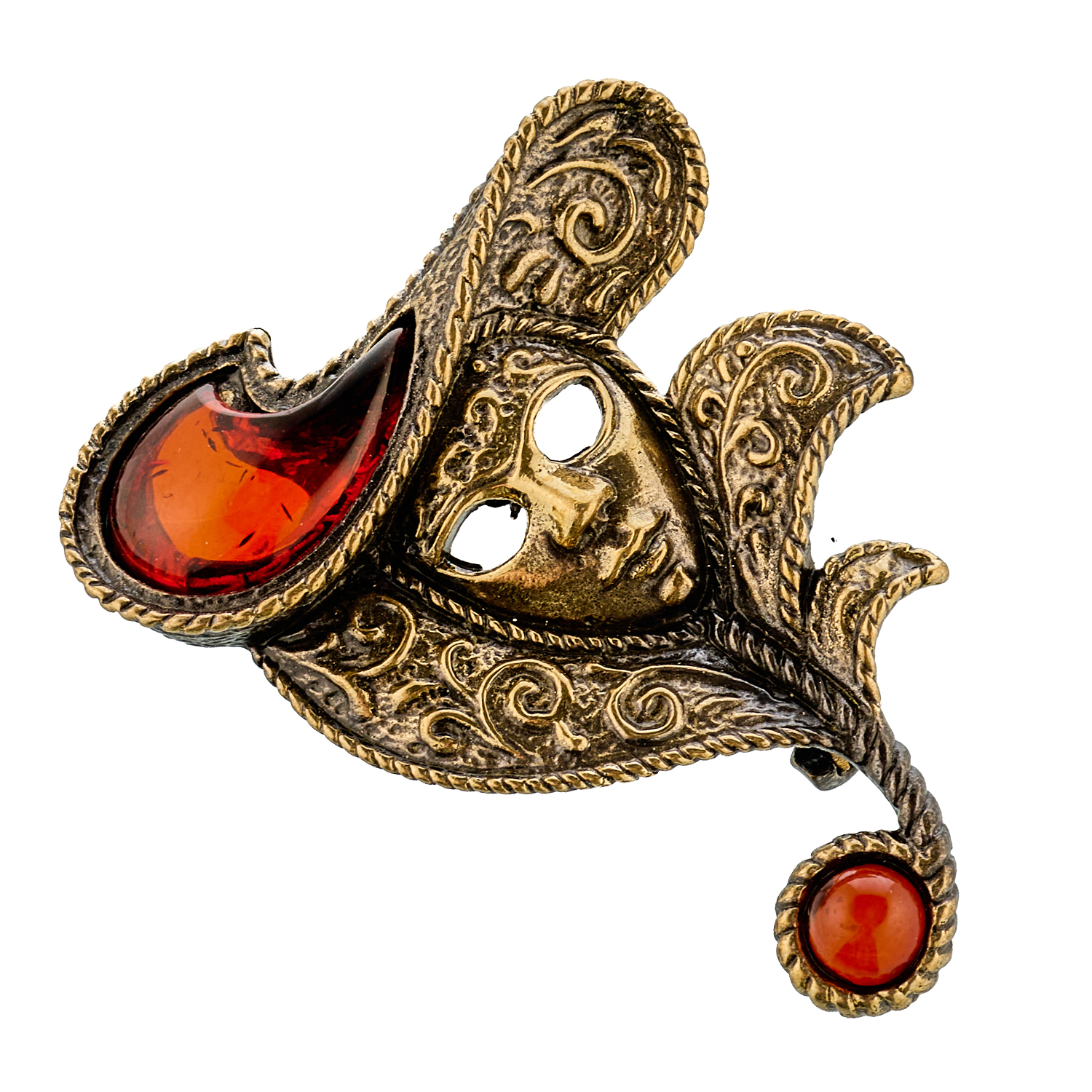 Брошь с янтарем "Венецианская маска".Материалы: бронза, янтарь.