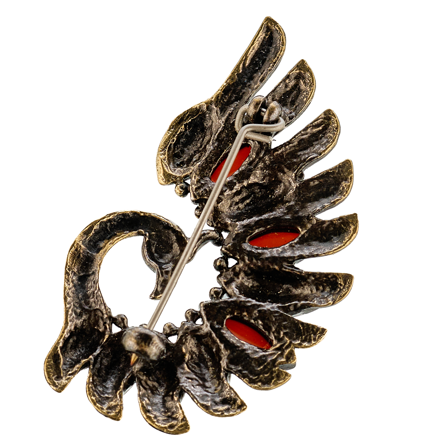 Брошь с янтарем "Королевский павлин".Материалы: бронза, янтарь.