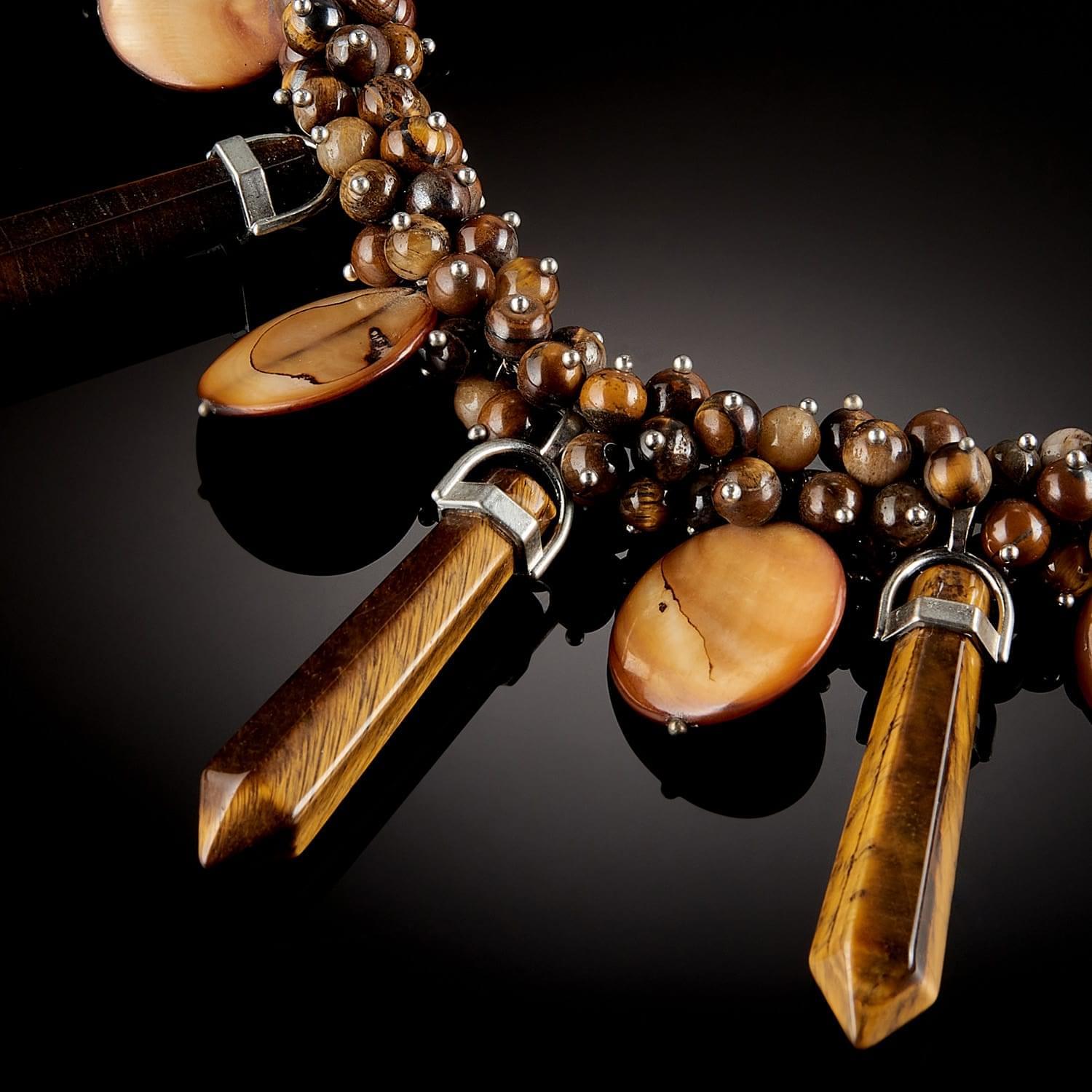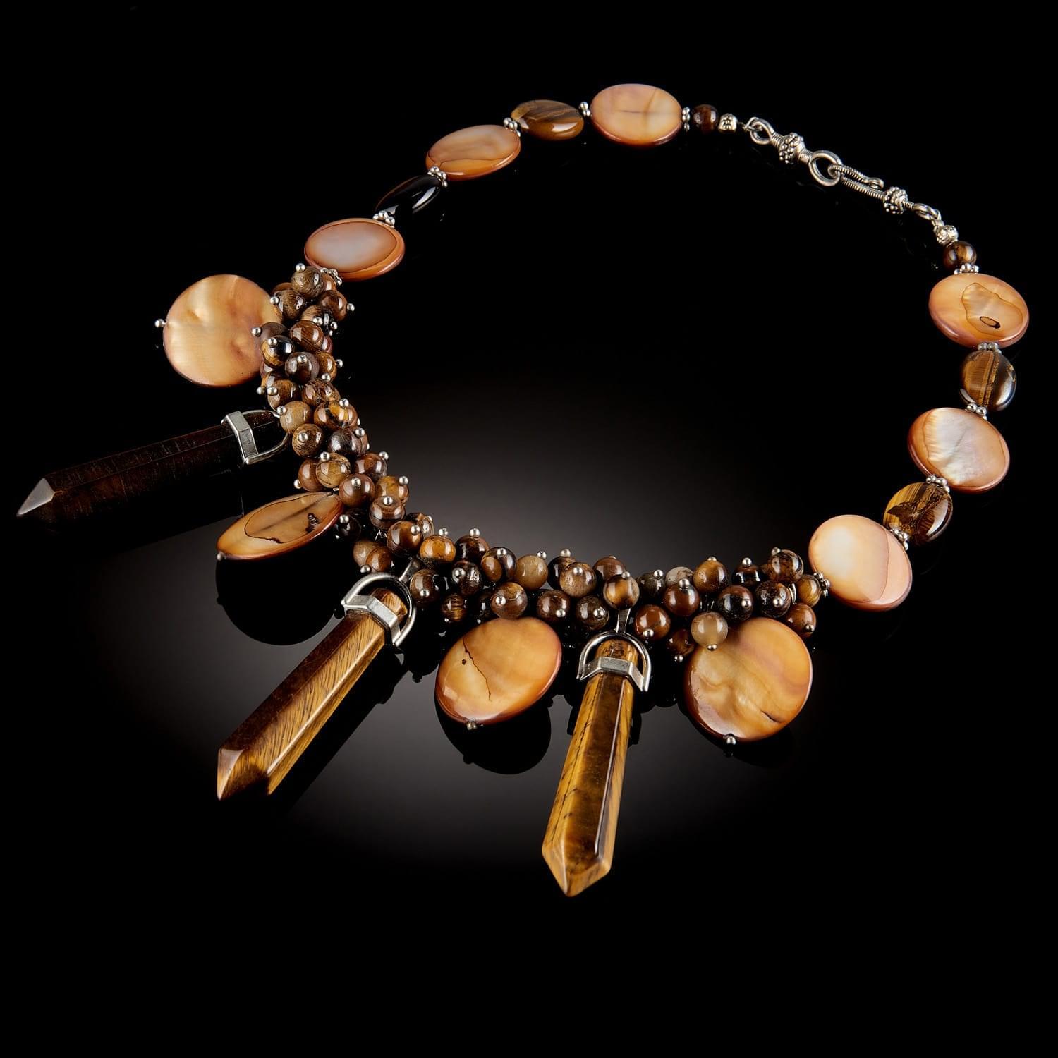 Бусы из натурального камня. Тигровый глаз, перламутр